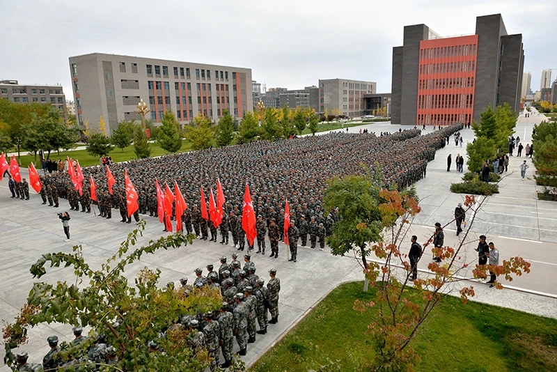 2020年10月13日早上,武威職業(yè)學院在大學生活動中前廣場舉行了2020級新生軍訓動員大會。學院黨委副書記翟存祥向軍訓團授旗,并宣布新生軍訓開始;31666部隊政治工作部副主任杜太申作動員講話,院領導王永緒、田迎春、何毅、陳曉煜、張開禮出席大會;學院各教學院系負責人、輔導員、班主任及?2020級4339名學生參加了大會。大會由黨委委員、副院長王守云主持。?