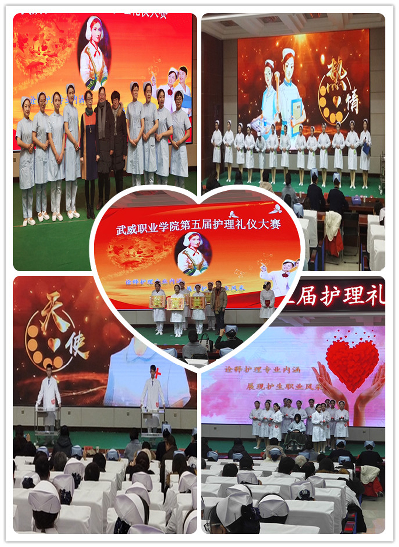 為弘揚(yáng)南丁格爾精神,強(qiáng)化護(hù)生禮儀修養(yǎng),推進(jìn)護(hù)理專業(yè)深層次內(nèi)涵式發(fā)展,助推我市文明城市建設(shè),12月21日,在大學(xué)生活動(dòng)中心菁英廳舉辦了“武威職業(yè)學(xué)院第五屆護(hù)理禮儀大賽”。學(xué)院黨委書記、院長趙明、學(xué)院副院長田迎春、院工會(huì)主席金玉龍、教務(wù)處處長仲生仁、學(xué)生工作處處長王守云、招生就業(yè)處處長蔡柱山、科研處處長張玉琴、圖書館館長黃雪梅、電子信息黨總支書記袁青年應(yīng)邀出席本次活動(dòng),護(hù)理系300多名師生觀看了本次比賽。
