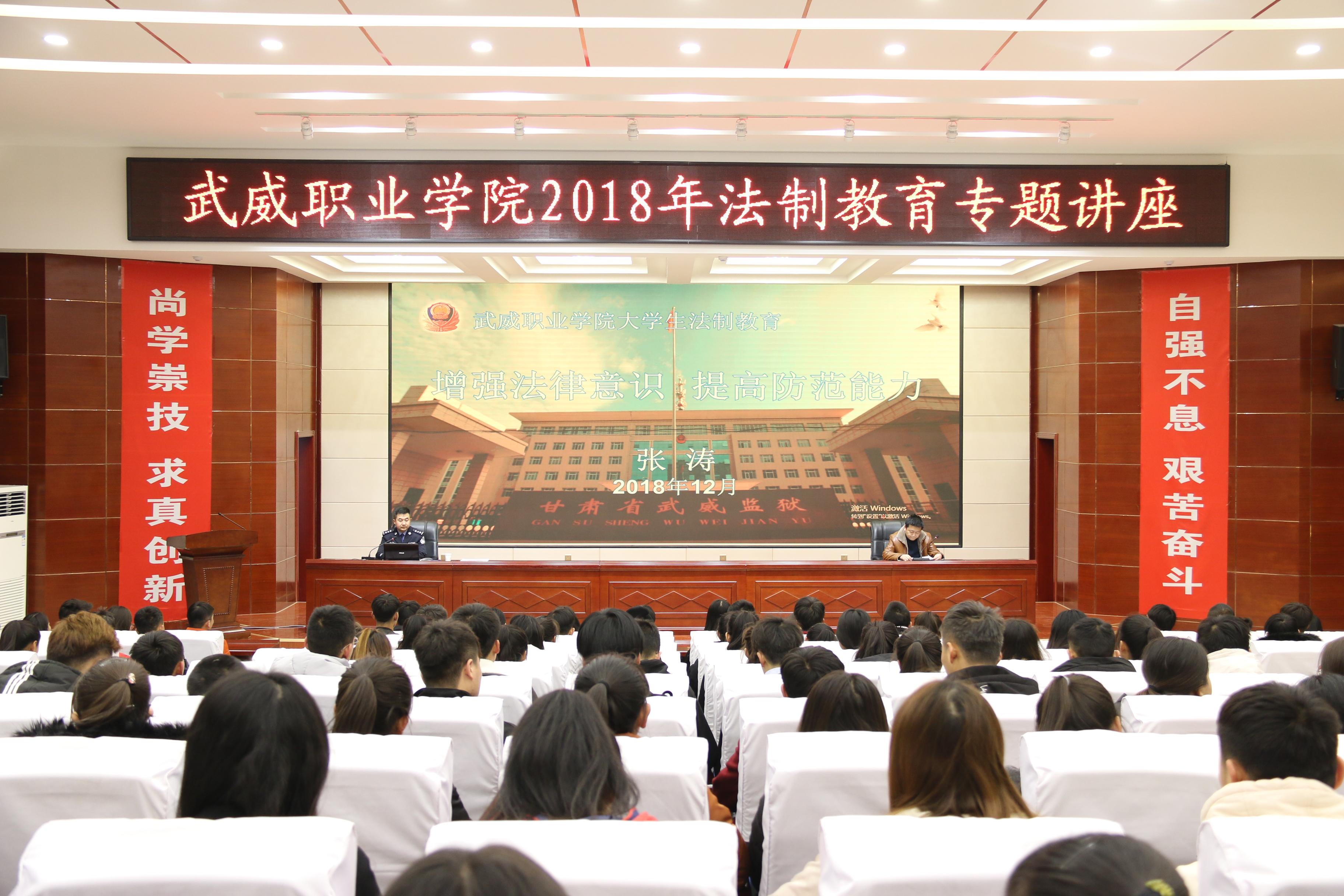 講座邀請了甘肅省武威監(jiān)獄第七監(jiān)區(qū)副監(jiān)區(qū)長張濤警官主講。講座采取以案說法、以案學法、以法警示的方式,圍繞校園欺凌、網(wǎng)絡(luò)詐騙、校園貸等熱點問題,分析了目前青少年違法犯罪的現(xiàn)狀,闡釋了法律對于維護社會秩序、影響人們生活的重要性,深入淺出地講解了大學生應(yīng)該如何遵紀守法、如何預(yù)防犯罪、如何防止不法侵害、打擊犯罪及自我防范的一些基本方法,教導同學們要增強法律意識,提高防范能力,做一名知法、懂法、守法、用法的合格公民。