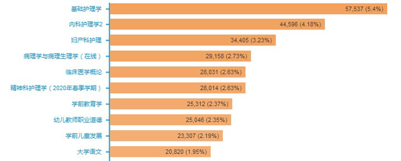 護理系《基礎護理學》課程的一周在線教學課堂統(tǒng)計數(shù)據(jù)