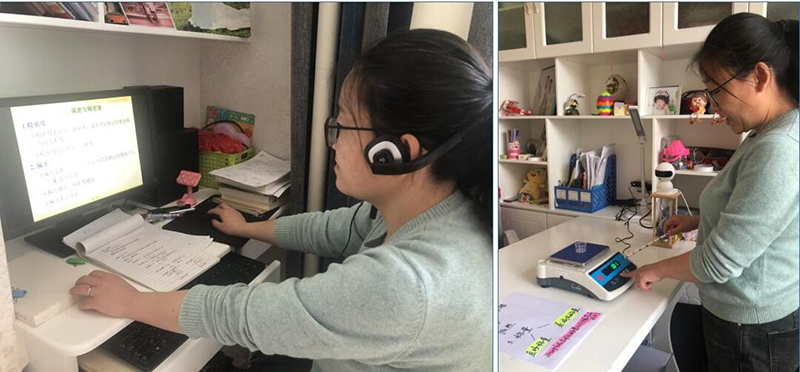 中科低碳新能源學院積極組織教研活動解決專業(yè)課程在線教學難題。李春蘭老師在《分析化學》教學中通過視頻直播為學生展示低精度電子天平使用過程,為后續(xù)到校實踐教學開展打好基礎。