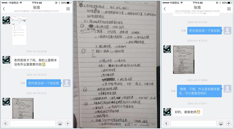 現(xiàn)代農(nóng)業(yè)技術系和汽車工程系的幾位學生春節(jié)前外出打工時,因疫情爆發(fā)未能及時返回,被滯留當?shù)?。疫情緩和后企業(yè)復工,學生為了能按時參加在線學習,努力克服了時間不足、上網(wǎng)不便、網(wǎng)絡卡頓等諸多問題,白天工作、晚上學習,刻苦的身影令人動容。