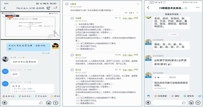 機械制造系和電信系的教師在課后積極收集學生的提問或者疑難問題,利用課余或周末的時間,在家中通過白板講解、紙筆講解的方式利用釘釘群直播講解練習題,開展互動答疑。