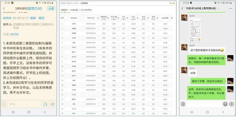 建筑工程系根據(jù)學院在線教學工作會的相關要求,進一步細化了在線教學實施方案,落實到每一位教師和學生。開課第三周,建筑工程系在總結前兩周線上教學經(jīng)驗的基礎上,結合學生的反饋意見,重新梳理了在線教學實施流程,通過課前發(fā)放預習材料明確學習目標和重難點,課后進一步充實線下學習資料,組織開展拓展訓練等教學流程,避免了工科類課程內(nèi)容枯燥、乏味,學生學習興趣不高的問題。借助超星學習通設計了大量的師生互動環(huán)節(jié),增強課程的互動性和趣味性。加強對教學過程的監(jiān)督管理,教學秘書每天會在學習平臺后臺統(tǒng)計整理學情數(shù)據(jù)分發(fā)至各班,由任課教師、班主任反復提醒督促,確保在線學習學生到課率達到90%以上,保證了線上教學效果。