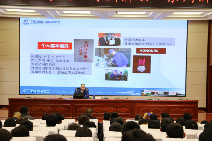 最后,翟存祥教授為胡建民頒發(fā)聘書,特聘請胡建民為武威職業(yè)學(xué)院人才培養(yǎng)技能大師。翟存祥指出,校企合作,相互支持,共同發(fā)展是校企互贏的發(fā)展模式。中科低碳新能源技術(shù)學(xué)院同中科院和蘭鈾公司合作,為同學(xué)們提供了優(yōu)質(zhì)教育資源、更高更好的發(fā)展平臺,技藝精湛的教師團(tuán)隊。希望同學(xué)們珍惜機(jī)遇,學(xué)習(xí)胡大師學(xué)習(xí)中嚴(yán)謹(jǐn)?shù)闹螌W(xué)態(tài)度,實踐中“斤斤計較”、精益求精的工匠精神,生活中敞開胸懷的人生態(tài)度,成長為優(yōu)秀技能人才。