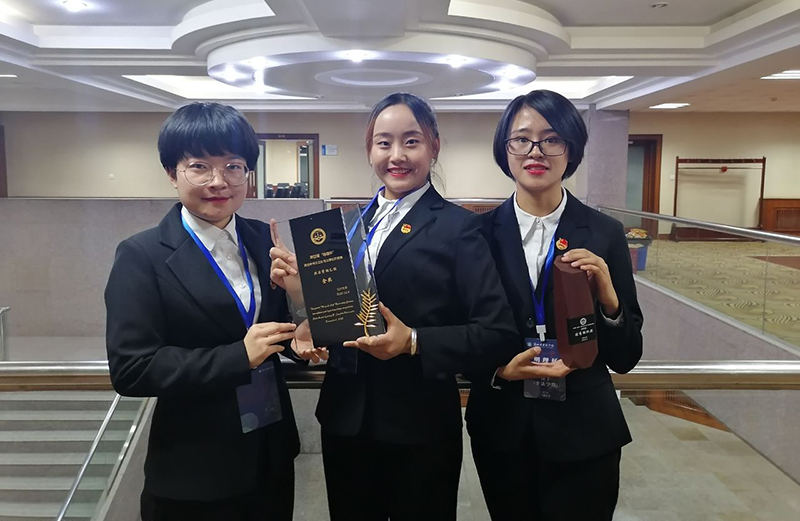在上午進行的初賽中,非法學(xué)組共有13個學(xué)校參加,前八名進入決賽。我院三位選手在與兄弟學(xué)校的激烈角逐下,脫穎而出,以小組賽第二名、初賽第四名的成績輕松進入決賽。下午的決賽中,面對更強大的對手,面對評委老師,三位選手始終面帶笑容、自信滿滿、密切配合,憑自己的努力、實力,發(fā)揮出她們的最好水平,個人答題毫無破綻、搶答過程頻頻得手、個人論述聲情并茂,獲得了評委的高度贊賞。經(jīng)過激烈的比拼,我院代表隊一路披荊斬棘,過關(guān)斬將,最終獲得非法學(xué)組金獎(第一名),學(xué)院獲優(yōu)秀組織獎,羅茜獲得個人優(yōu)秀選手獎。
