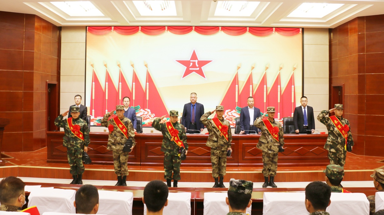 大會上,高鵬堂宣讀了2021年春季入伍學(xué)生名單和近兩年退役復(fù)學(xué)學(xué)生名單;參會領(lǐng)導(dǎo)為應(yīng)征入伍的12名新兵佩戴紅花,贈送紀念品,為退役復(fù)學(xué)學(xué)生代表佩戴紅花,頒發(fā)榮譽證書。
