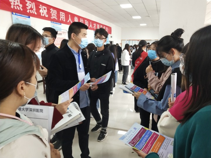 因疫情防控原因,此次招聘會采取“線上+線下”結(jié)合的方式,其中線上有喀什地區(qū)第一人民醫(yī)院、和田地區(qū)人民醫(yī)院、四川省江油市第四人民醫(yī)院、北京醫(yī)百科技有限公司等8家單位參會;線下有新疆新和縣人民醫(yī)院、新疆生產(chǎn)建設(shè)兵團第五師醫(yī)院、新源縣人民醫(yī)院、恒升醫(yī)學(xué)科技股份有限公司、武威幸業(yè)養(yǎng)老中心、金昌八冶頤養(yǎng)醫(yī)院、蘭州惠仁堂藥業(yè)有限公司等23家單位參會;共有來自省內(nèi)外的31家醫(yī)療相關(guān)單位參加了本次招聘會,提供了1100多個就業(yè)崗位,基本滿足學(xué)院醫(yī)學(xué)類專業(yè)畢業(yè)生的就業(yè)需求。