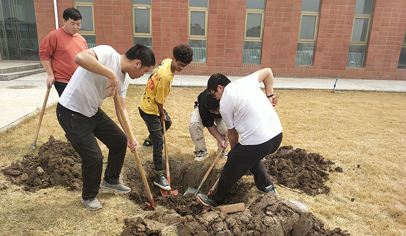 活動中,師生代表熱情高漲、干勁十足,按照專業(yè)人員的植樹指導(dǎo),三人一組,緊密分工協(xié)作、熱情高漲、干勁十足,揮鍬挖窩、扶苗培土、提桶澆水,道道工序細致認真、有條不紊。經(jīng)過師生代表近四小時的忙碌勞動,三百株新栽的樹苗迎風(fēng)挺立,為學(xué)院增添上一抹“新綠”,也將綠色發(fā)展觀念“種”進每位師生心中。