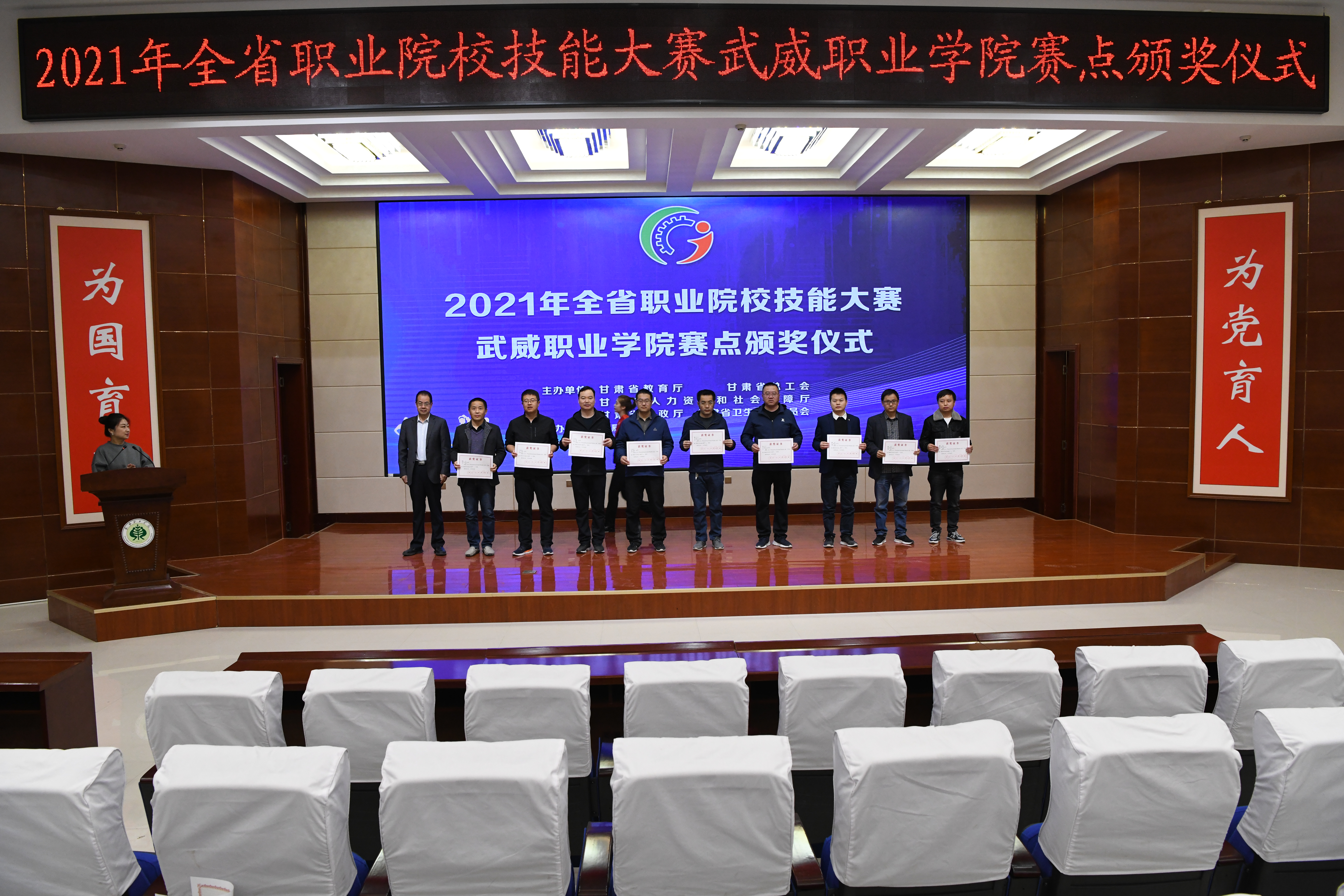4月19日,2021年甘肅省職業(yè)院校技能大賽物聯(lián)網(wǎng)應(yīng)用技術(shù)賽項(xiàng)(中職教師組)頒獎(jiǎng)儀式在學(xué)院菁英廳舉行。學(xué)院黨委副書記翟存祥為21名獲獎(jiǎng)教師頒獎(jiǎng),至此,物聯(lián)網(wǎng)應(yīng)用技術(shù)賽項(xiàng)(中職教師組)圓滿完成。