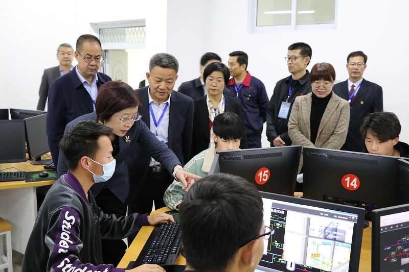 學院黨委書記、院長趙明向王海燕一行詳細匯報了學院基本情況、黨史學習教育、技能甘肅、“雙高計劃”項目建設、人才培養(yǎng)、師資隊伍建設、招生就業(yè)、校企合作、“1+X”證書試點、技能大賽、課程思政改革等情況,重點對與中科院上海應用物理研究所聯(lián)合舉辦中科低碳新能源技術(shù)學院情況進行了匯報。王海燕一行實地查看了中科低碳新能源技術(shù)學院實驗實訓室,并對積極備戰(zhàn)國賽的師生給予鼓勵。
