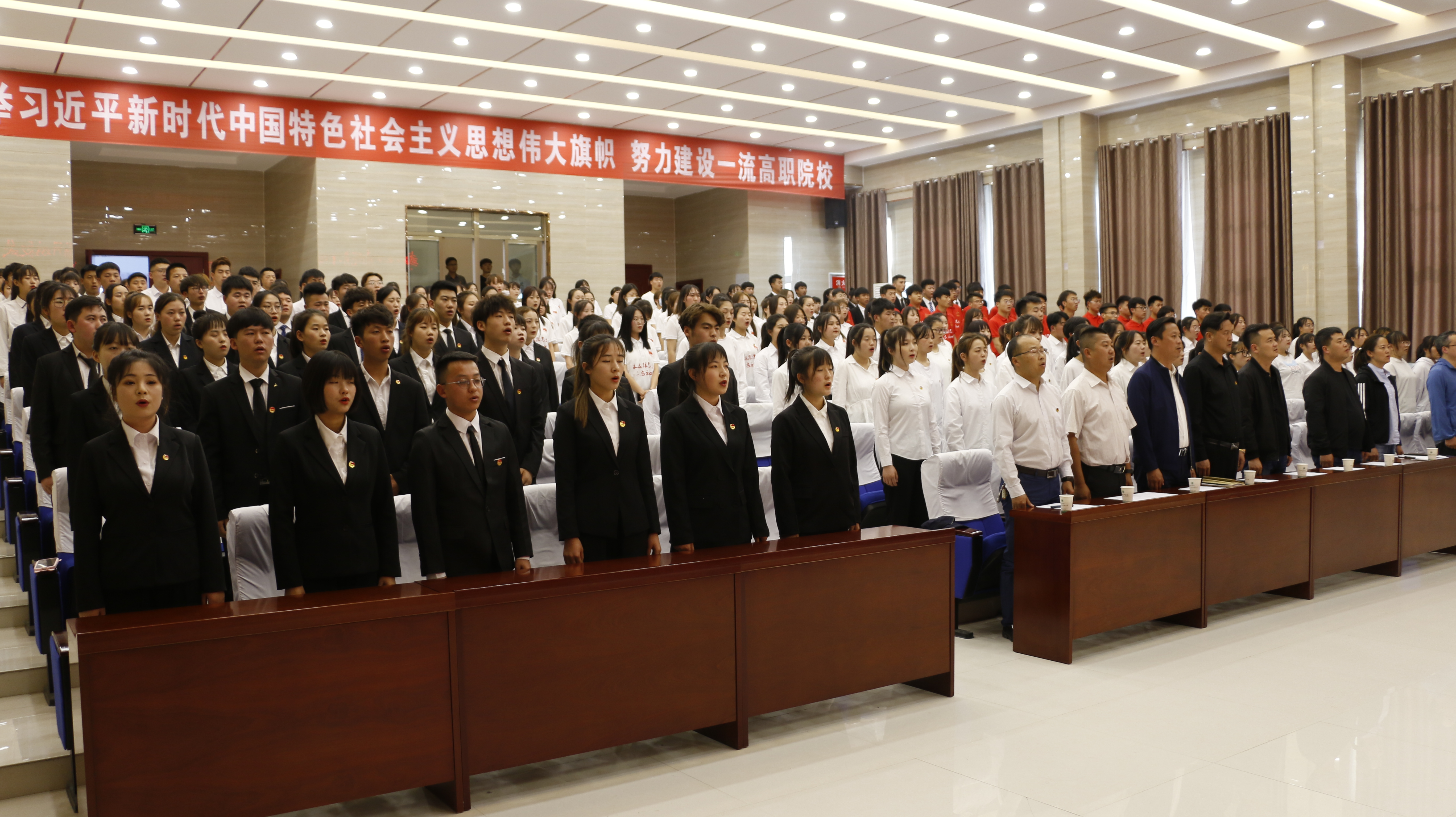 王守云強調,歷史和現(xiàn)實都告訴我們,青年一代有理想、有擔當,國家就有前途,民族就有希望。團員青年要緊密地團結在以習近平同志為核心的黨中央周圍,高舉團旗跟黨走,牢固樹立“四個意識”,堅定“四個自信”,堅決做到“兩個維護”。全面推進改革攻堅、從嚴治團各項工作,擔當起時代和民族的重任,腳踏實地、志存高遠,為學院“雙高計劃”建設工作貢獻青春力量,以優(yōu)異的成績獻禮建黨百年。