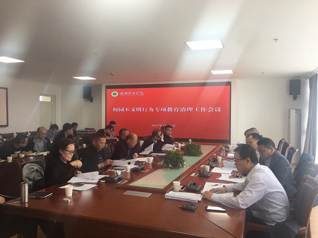 學生工作處負責人傳達了《關(guān)于開展校園不文明行為專項教育整治活動的通知》,對專項教育治理工作進行了具體安排。