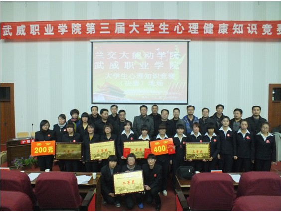 此次比賽歷時一個月,分為初賽和決賽兩部分。全院13個系和蘭交大能動學(xué)院代表隊(duì)參加了初賽的角逐,最終蘭交大能動學(xué)院、電子信息工程系、護(hù)理系、藥學(xué)系、外語系、農(nóng)經(jīng)系六支代表隊(duì)進(jìn)入決賽。競賽分必答題、搶答題、風(fēng)險題、觀眾互動四個環(huán)節(jié),內(nèi)容涉及心理理論知識、心理保健常識、心理科普知識等,融趣味性、教育性、普及性于一體。在比賽開始之前,各參賽隊(duì)一一向大家作了別出心裁的介紹,并喊出自己隊(duì)的參賽口號。比賽中,臺上選手們“八仙過海,各顯其能”,展現(xiàn)了他們雄厚的實(shí)力,隊(duì)員踴躍發(fā)言,積極搶答,臺下親友團(tuán)搖旗吶喊,為選手加油,高潮迭起。現(xiàn)場始終洋溢著緊張、熱烈、和諧的氣氛。最終,護(hù)理系代表隊(duì)以他們精彩出色的表現(xiàn)奪得一等獎,能動學(xué)院代表隊(duì)、外語系代表隊(duì)獲得二等獎,藥學(xué)系、電信系、農(nóng)經(jīng)系代表隊(duì)獲得三等獎。