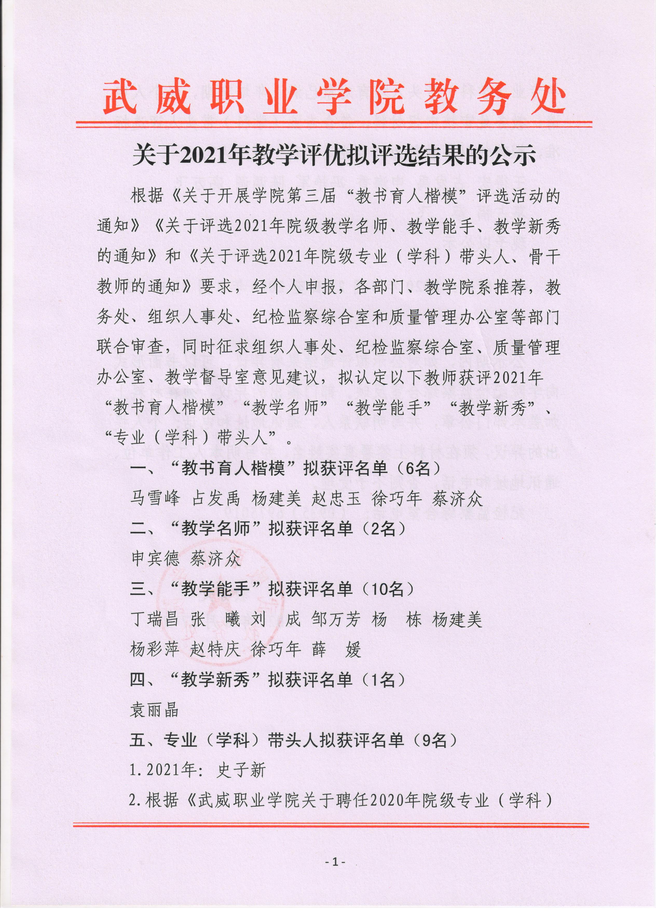 關(guān)于教學(xué)評(píng)優(yōu)擬評(píng)選結(jié)果的公示