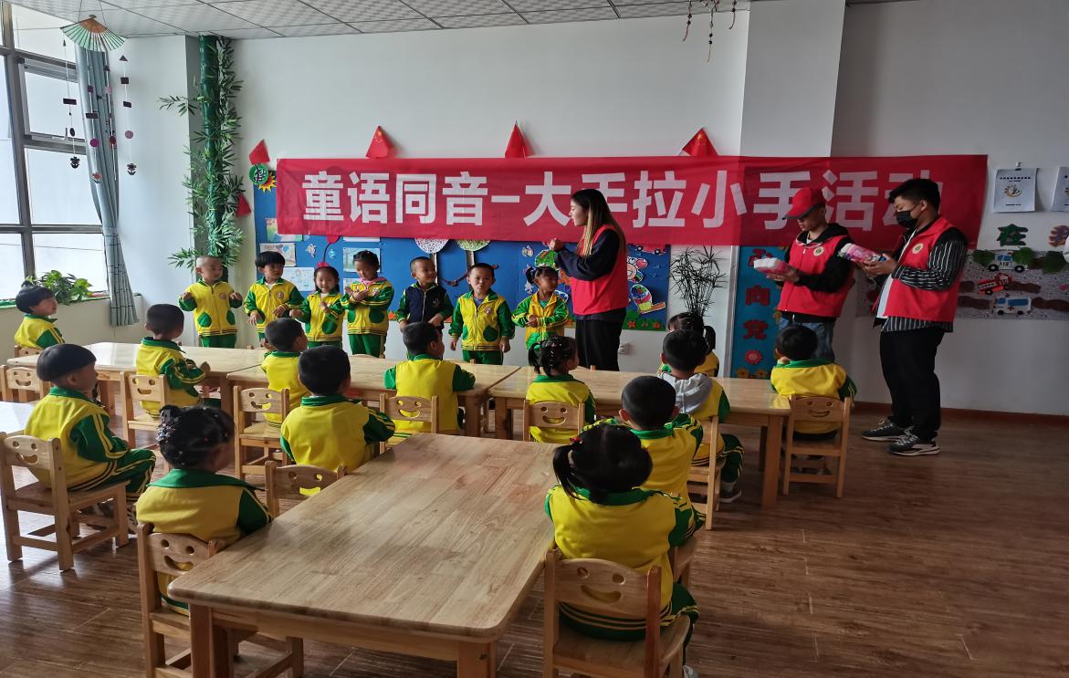為認(rèn)真貫徹落實(shí)《教育部等九部門關(guān)于開展第24屆全國推廣普通話宣傳周活動的通知》(教語用函〔2021〕1號)、《甘肅省語言文字工作委員會等九部門關(guān)于開展第24屆全國推廣普通話宣傳周活動的通知》要求,進(jìn)一步加大國家通用語言文字推廣力度,9月14日,學(xué)院推普志愿隊(duì)師生在古浪綠洲小鎮(zhèn)第一幼兒園開展童語同音-大手拉小手推普活動,推普志愿隊(duì)詳細(xì)了解小鎮(zhèn)幼兒教師及兒童的普通話普及情況,并與大、中班幼兒進(jìn)行了有趣的互動活動。