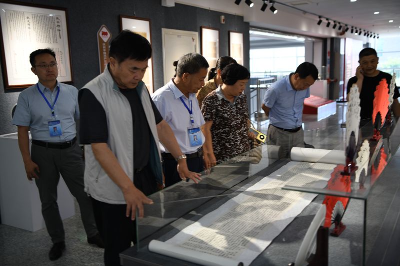 會(huì)后,考察組一行在學(xué)院領(lǐng)導(dǎo)的陪同下先后參觀考察了學(xué)院紅色文化藝術(shù)館、中華優(yōu)秀傳統(tǒng)文化藝術(shù)作品展,趙明向考察組做了詳細(xì)講解。