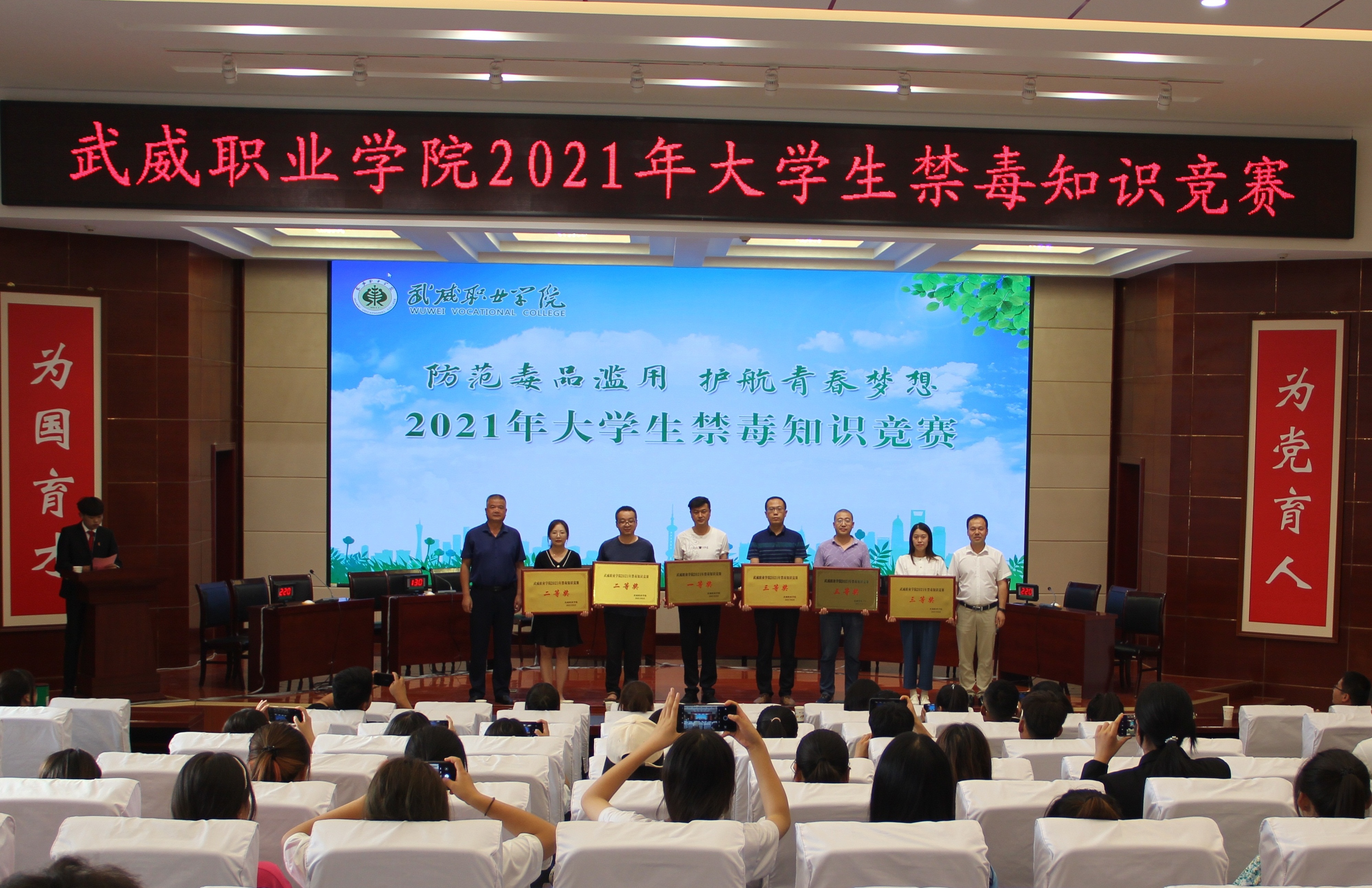 為加強(qiáng)在校大學(xué)生禁毒知識(shí)普及教育,深入推進(jìn)青少年毒品預(yù)防教育“6.27”工程,7月5日下午,學(xué)院在菁英廳舉辦以“防范毒品濫用,護(hù)航青春夢(mèng)想”為主題的2021年大學(xué)生禁毒知識(shí)競(jìng)賽決賽。學(xué)院黨委委員、副院長(zhǎng)王守云出席活動(dòng)。各教學(xué)院系200多名師生觀看了比賽。