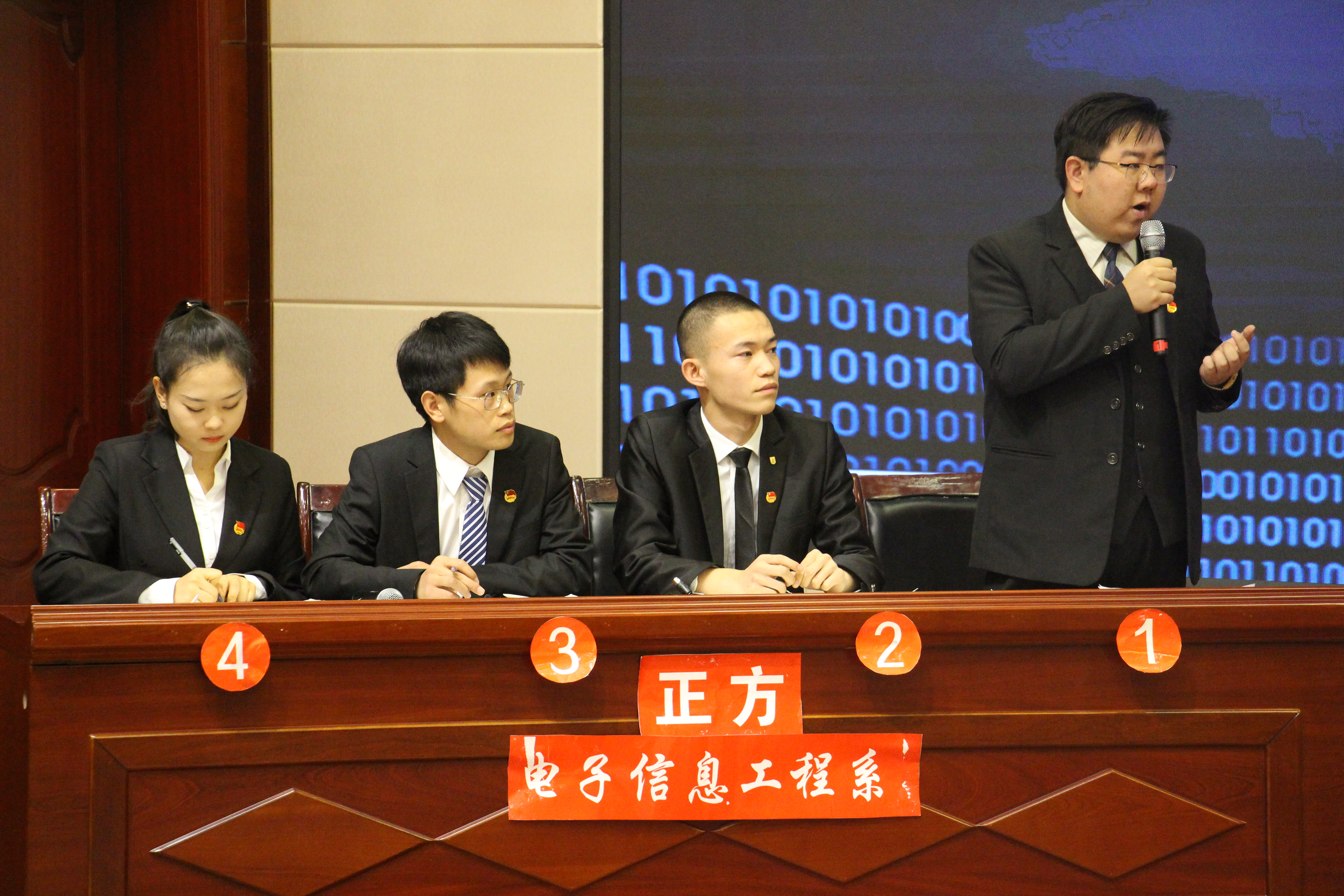 經(jīng)過11場次的比賽,電子信息工程系代表隊(duì)和藥學(xué)系代表隊(duì)進(jìn)入最后決賽。決賽現(xiàn)場,正反雙方針對(duì)高素質(zhì)技術(shù)技能人才以“仁”還是以“智”為先拉開激烈交戰(zhàn)。雙方選手在立論、駁立論、攻辯等環(huán)節(jié)中思路清晰,引經(jīng)據(jù)典,高潮迭起。自由辯論環(huán)節(jié),雙方唇槍舌戰(zhàn),針鋒相對(duì),步步為營,愈辯愈烈,精彩紛呈,觀眾也積極互動(dòng),現(xiàn)場氣氛十分活躍。