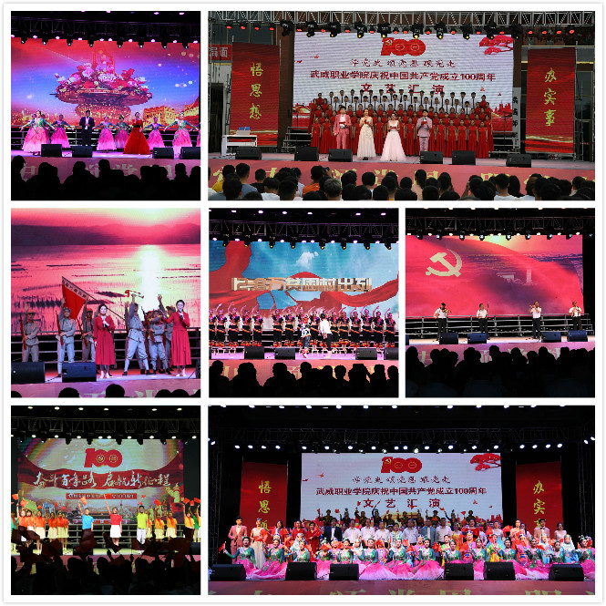 “學(xué)黨史 頌黨恩 跟黨走”——6月29日晚上,武威職業(yè)學(xué)院慶祝建黨100周年文藝匯演在學(xué)生活動中心前廣場隆重舉行。