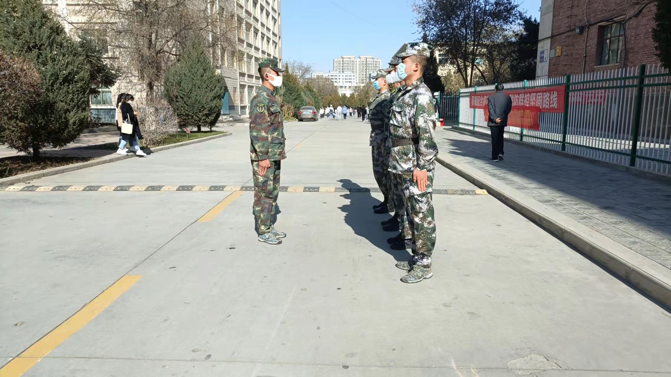 退伍不褪色,戰(zhàn)疫顯擔(dān)當(dāng)。自我省新冠肺炎疫情發(fā)生后,全院上下齊心協(xié)力共同戰(zhàn)“疫”,學(xué)院的11名退役大學(xué)生士兵也積極響應(yīng)號召,主動請戰(zhàn)投身抗疫一線,在校園維護學(xué)生健康安全崗位上堅守,不畏嚴(yán)寒,認(rèn)真負(fù)責(zé),全力守護校園平安,為打贏疫情防控阻擊戰(zhàn)貢獻(xiàn)自己的力量,以實際行動踐行了“抗疫有我,沖鋒在前,堅持到底,永不后退”的錚錚誓言。