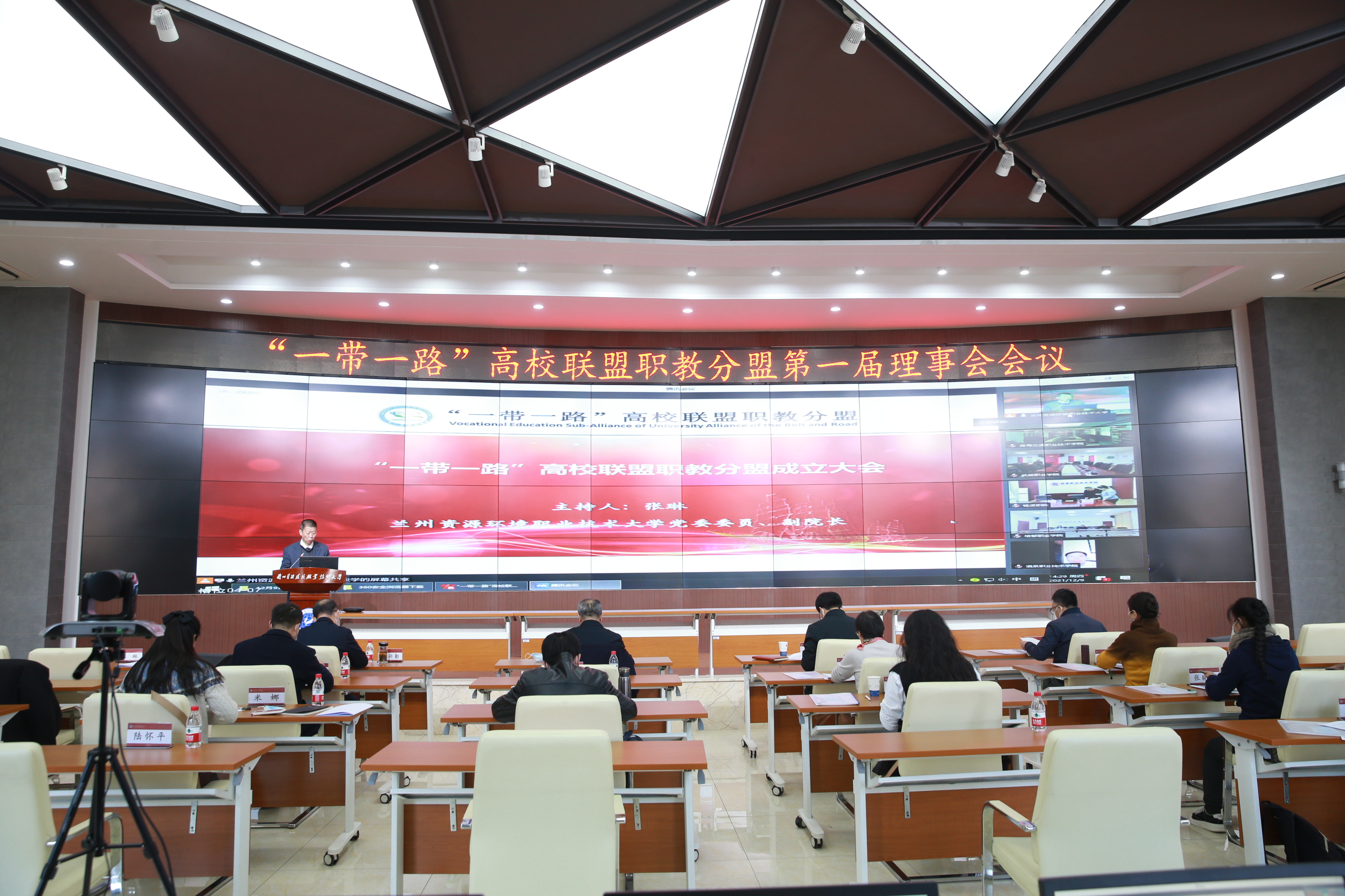 12月9日下午,“一帶一路”高校聯(lián)盟職教分盟第一屆理事會(huì)會(huì)議在蘭州資源環(huán)境職業(yè)技術(shù)大學(xué)召開,會(huì)議旨在加強(qiáng)“一帶一路”高校聯(lián)盟職教分盟組織建設(shè),增進(jìn)分盟成員單位之間的合作與交流,發(fā)揮理事單位在推進(jìn)“一帶一路”職業(yè)教育對(duì)外合作與交流作用。會(huì)議以蘭外線上蘭內(nèi)線下的形式召開。學(xué)院設(shè)立分會(huì)場,參加在線會(huì)議。黨委委員、副院長田迎春參加會(huì)議,國際合作與交流處處長潘從民及相關(guān)人員參加會(huì)議。