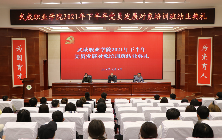 任陶宣讀了《中共武威職業(yè)學(xué)院委員會(huì)關(guān)于黨員發(fā)展對(duì)象培訓(xùn)班結(jié)業(yè)情況的通報(bào)》,培訓(xùn)班班主任、建筑工程系黨總支專職組織員呂雪玲宣讀了《2021年下半年黨員發(fā)展對(duì)象培訓(xùn)班結(jié)業(yè)名單》。