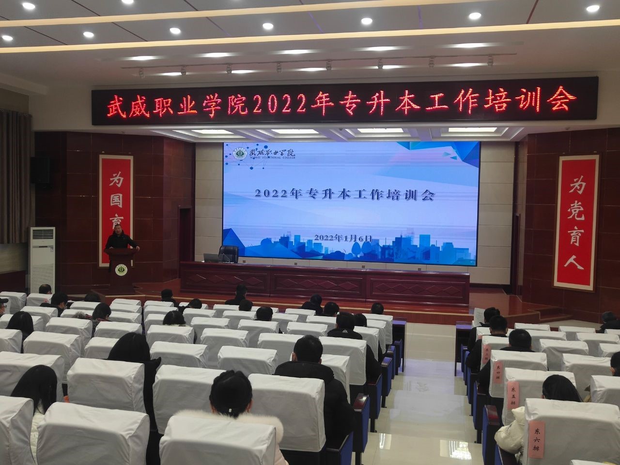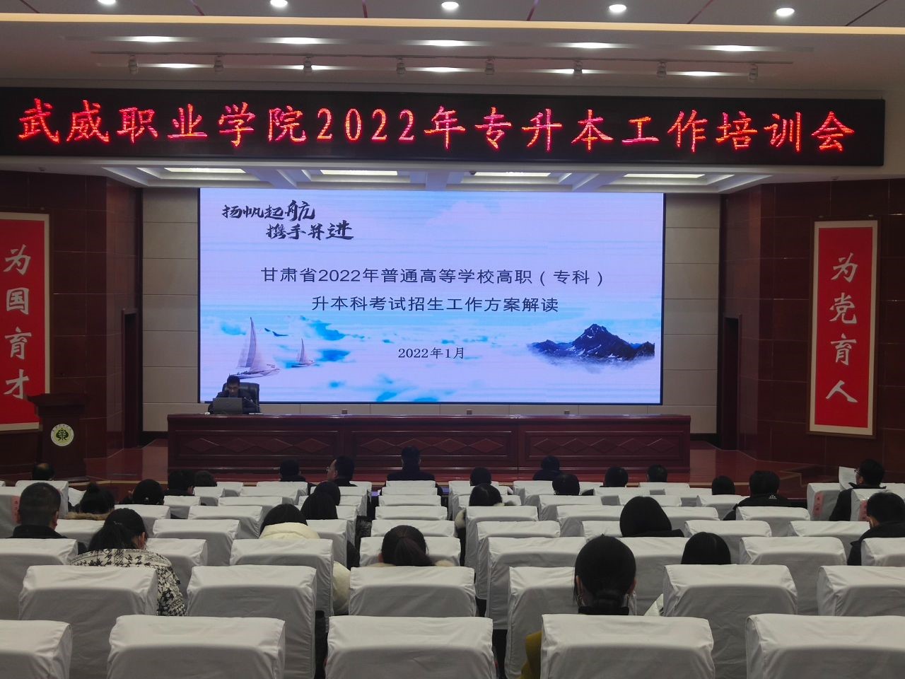 為貫徹落實(shí)甘肅省2022年普通專(zhuān)升本考試招生工作部署會(huì)會(huì)議精神,積極宣傳我省2022年“專(zhuān)升本”招生考試改革政策,引導(dǎo)學(xué)院應(yīng)屆畢業(yè)生積極報(bào)考“專(zhuān)升本”考試,拓寬畢業(yè)生就業(yè)渠道,實(shí)現(xiàn)高質(zhì)量就業(yè)。1月6日,招生就業(yè)處組織召開(kāi)了學(xué)院2022年“專(zhuān)升本”工作培訓(xùn)會(huì)。相關(guān)部門(mén)負(fù)責(zé)人、各教學(xué)院系書(shū)記、主任、輔導(dǎo)員及畢業(yè)班班主任參加了會(huì)議。會(huì)議由招生就業(yè)處處長(zhǎng)蔡柱山主持。
