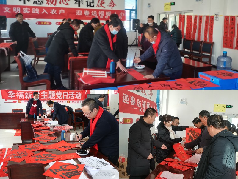 學(xué)院在橫梁鄉(xiāng)幸福新村、康寧新村設(shè)置了2個(gè)創(chuàng)作點(diǎn),活動(dòng)現(xiàn)場(chǎng)氛圍喜慶熱烈,書(shū)畫(huà)教授現(xiàn)場(chǎng)揮毫潑墨,激情抒寫,不同字體的大“?!弊?,紅紅的春聯(lián),透露著洋洋喜氣,書(shū)寫出橫梁鄉(xiāng)群眾的美好愿景。