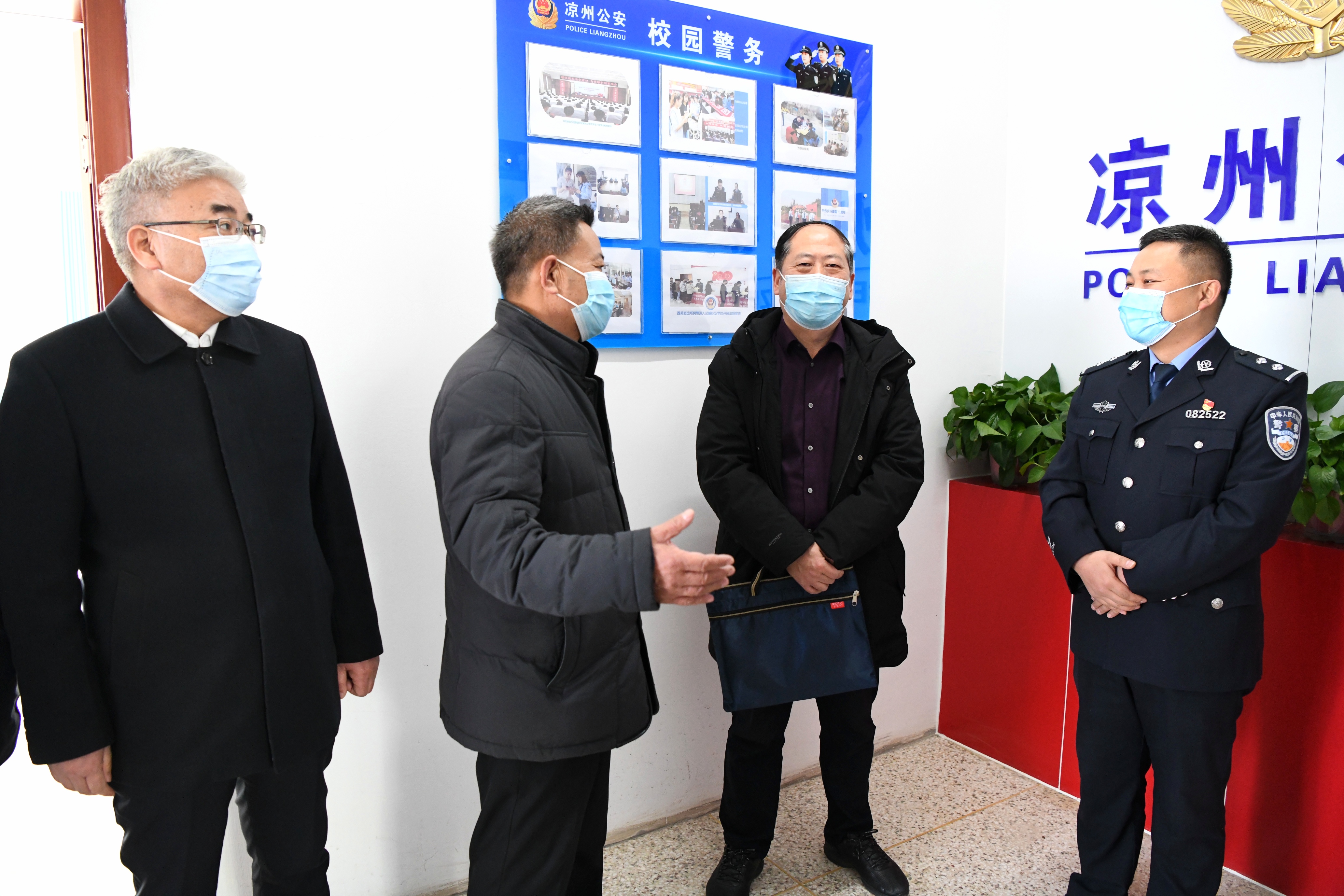 1月13日下午,平安甘肅建設(shè)工作第八考評組在省高等學(xué)校服務(wù)中心主任崔亮的帶領(lǐng)下來校實地檢查考評2021年度平安校園建設(shè)工作。市委政法委常務(wù)副書記連林中,學(xué)院黨委書記、院長趙明,黨委委員、副院長何毅,黨委委員、紀委書記、監(jiān)察專員陳曉煜,黨委委員、副院長王守云陪同檢查考評。