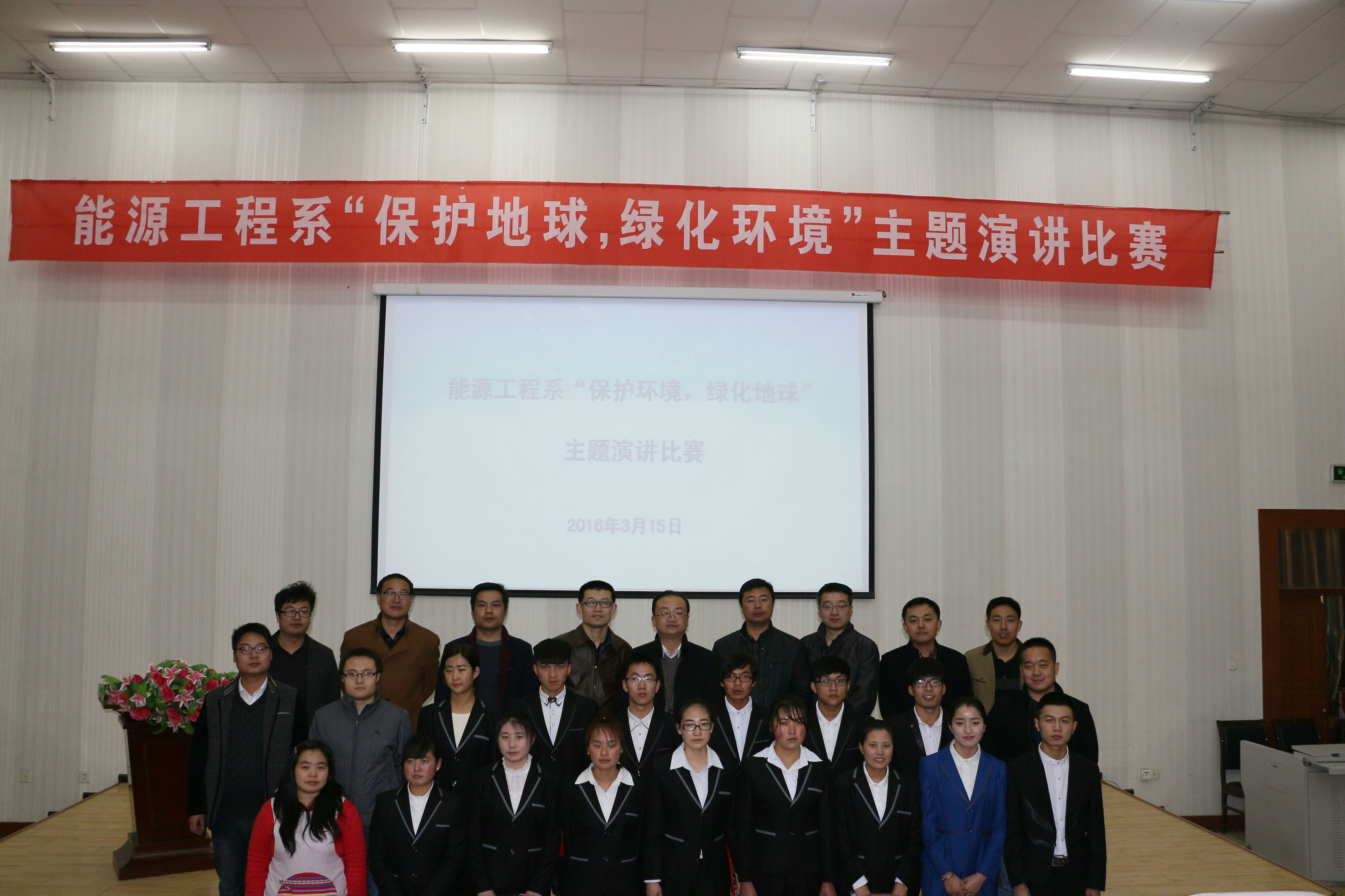 3月15日晚能源工程系在尚德樓正德廳舉辦了“保護(hù)地球,綠化環(huán)境”演講比賽決賽,參加此次活動(dòng)的有能源工程系全體師生。