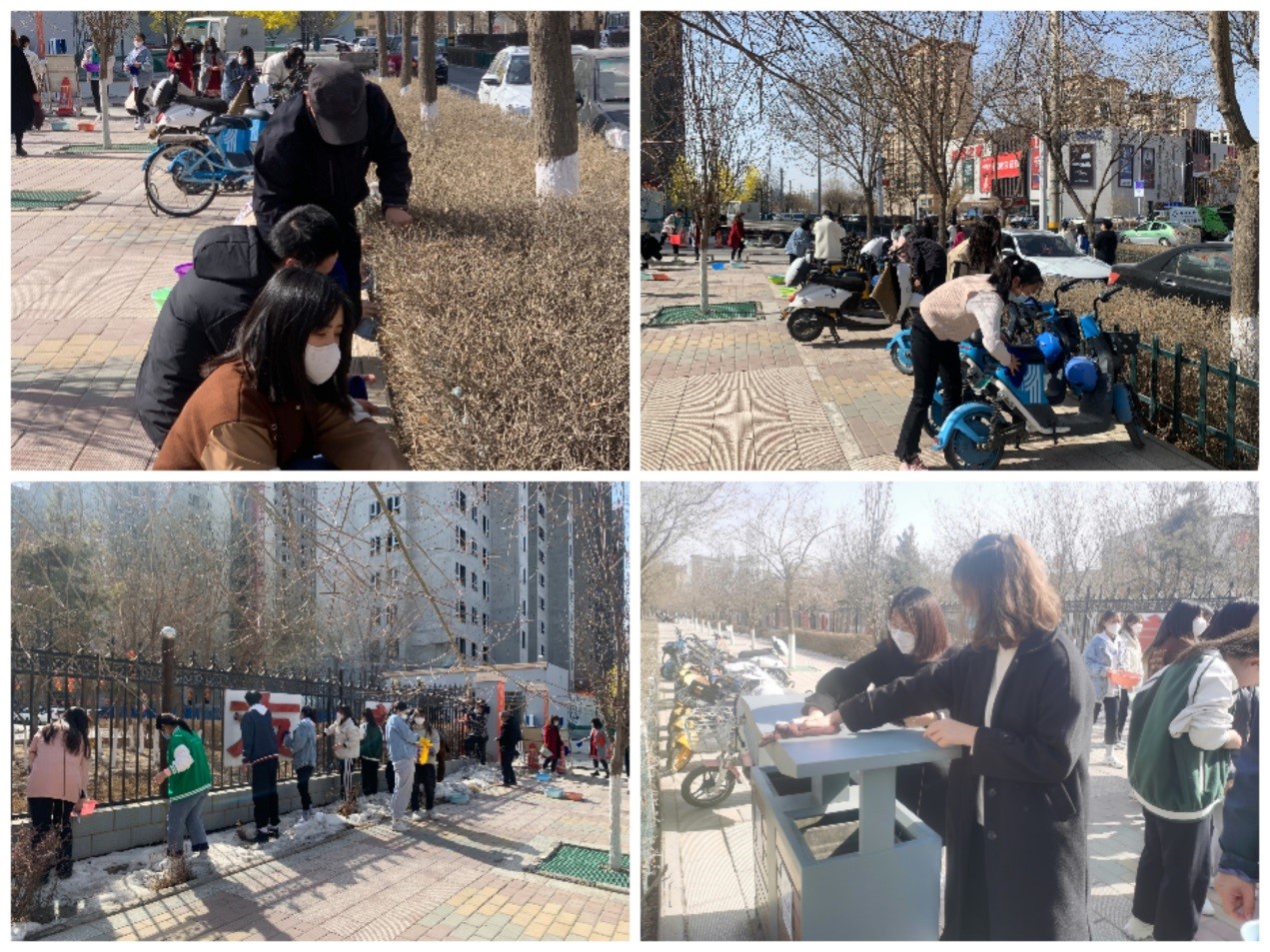 志愿者們來到學(xué)院北大門前學(xué)府路與皇臺(tái)路交叉十字至小北門道路兩側(cè),在主干道擦洗綠化帶隔離欄、校園柵欄、展示牌、垃圾箱,擺放共享單車,打掃衛(wèi)生,開展學(xué)雷鋒志愿服務(wù)主題活動(dòng)。