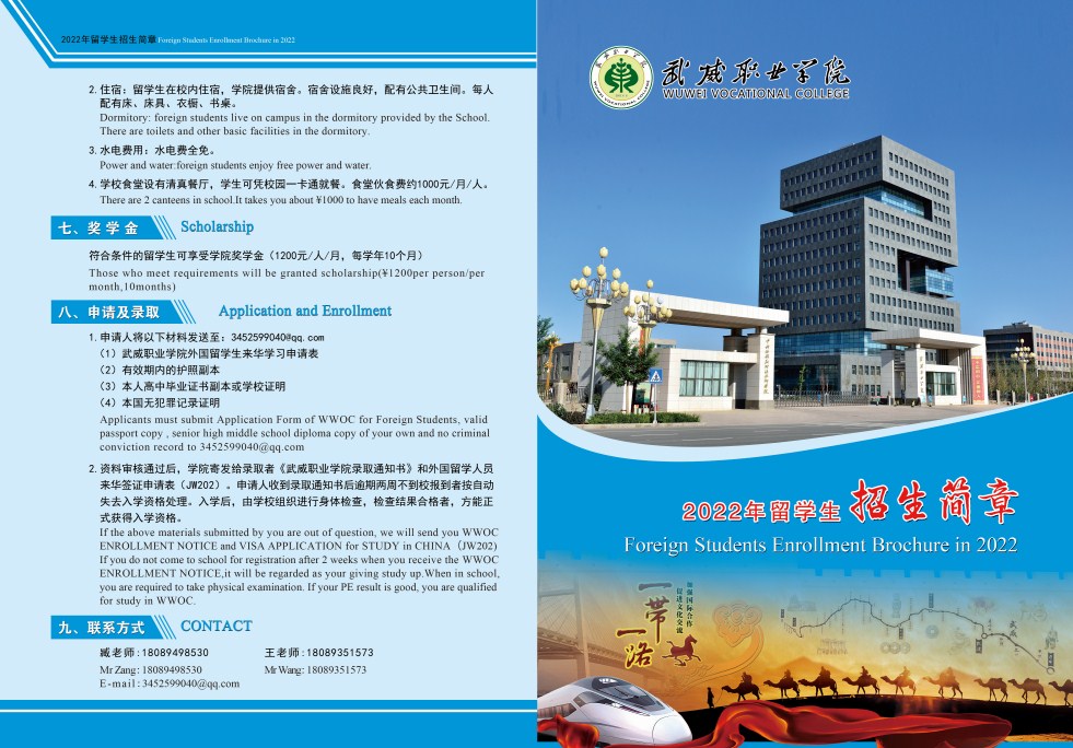 武威職業(yè)學院2022年留學生招生簡章