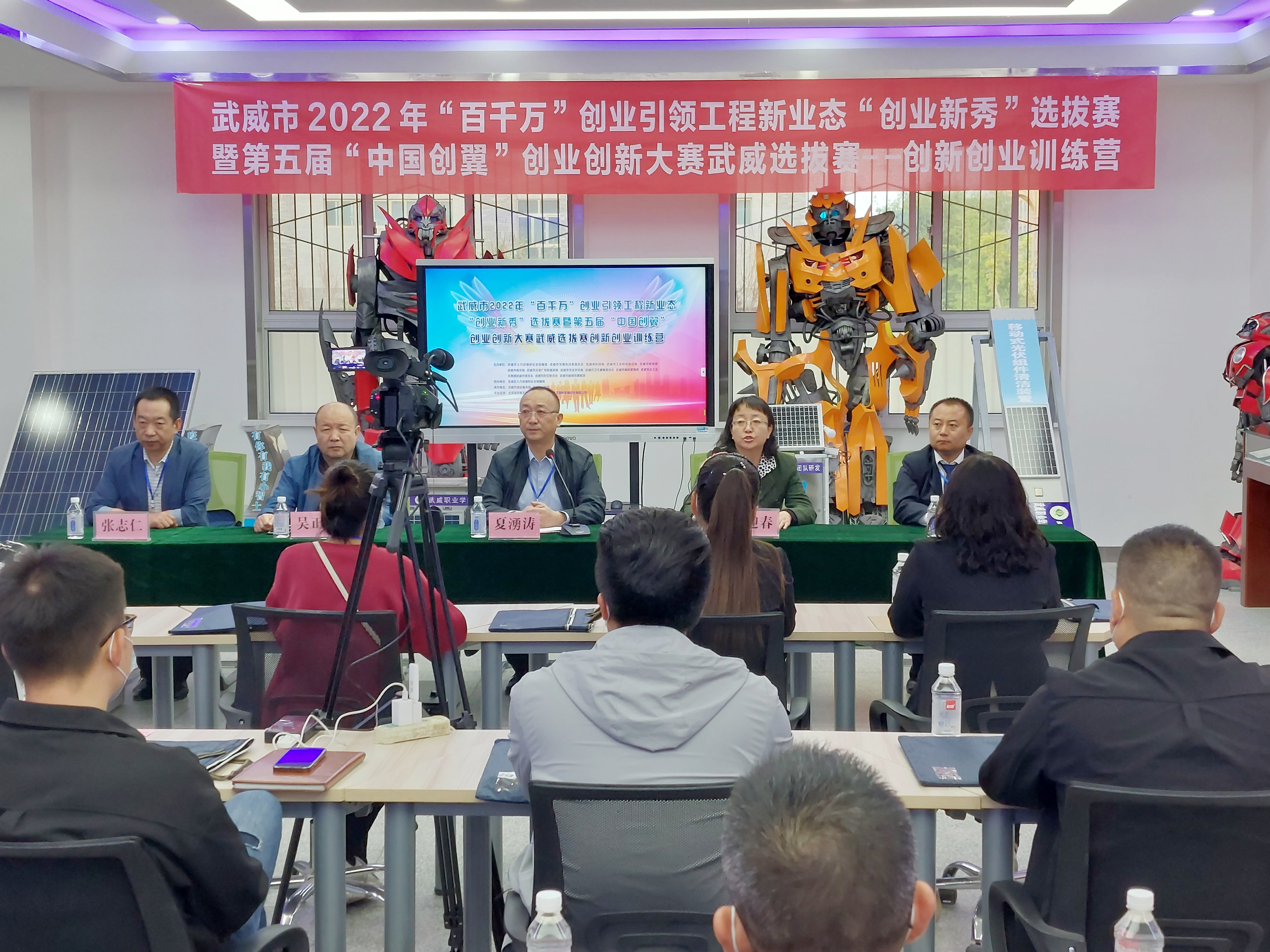 5月8日,由武威市人社局、發(fā)改委、就業(yè)局等14個部門共同主辦的武威市 2022 年“百千萬”創(chuàng)業(yè)引領(lǐng)工程新業(yè)態(tài)“創(chuàng)業(yè)新秀”選拔賽暨第五屆“中國創(chuàng)翼”創(chuàng)業(yè)創(chuàng)新大賽選拔賽創(chuàng)新創(chuàng)業(yè)訓(xùn)練營在我校成功舉辦。武威市就業(yè)局副局長夏湧濤,學(xué)校黨委委員、副校長田迎春出席開營儀式,全體參賽隊員以“線上”+“線下”的形式參加了本次訓(xùn)練營。