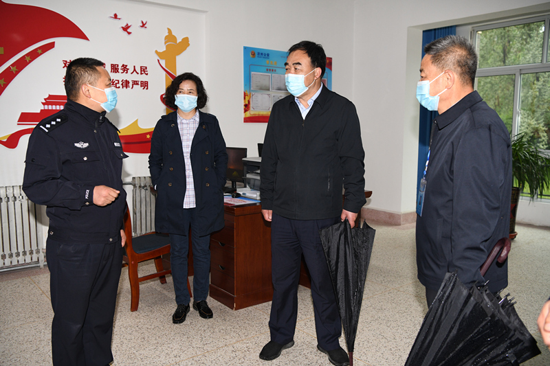 張曉東一行先后到校園警務室、安全保衛(wèi)處、學生食堂等地實地查看并詢問了解學校校園安全、消防器材、食品安全、疫情防控等情況,學校黨委書記、校長趙明逐一匯報了具體情況。張曉東對我校校園安全工作給予充分肯定,并就下一步學校安全工作提出指導性意見。