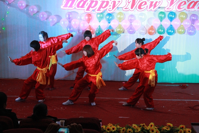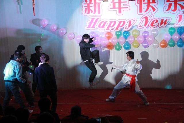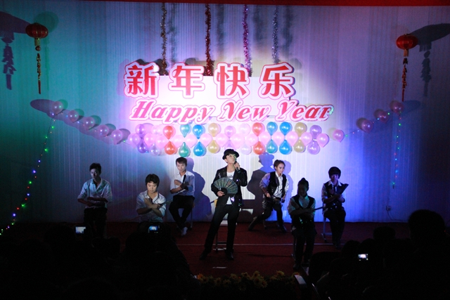 我系趙磊老師的薩克斯獨(dú)奏節(jié)奏明朗,富有磁力,優(yōu)美的旋律深深地吸引了全體觀眾。12級(jí)光熱班的張新輝,張一凡等同學(xué)反串《甄嬛傳》令現(xiàn)場(chǎng)的觀眾捧腹大笑。一首《祝?!返睦收b牽掛了所有觀眾,武術(shù)《中國功夫》令得全場(chǎng)驚呼,舞蹈《江南style》的精彩演出吸引了所有人的眼球。最后晚會(huì)在《同一首歌》的大合唱中緩緩落幕。