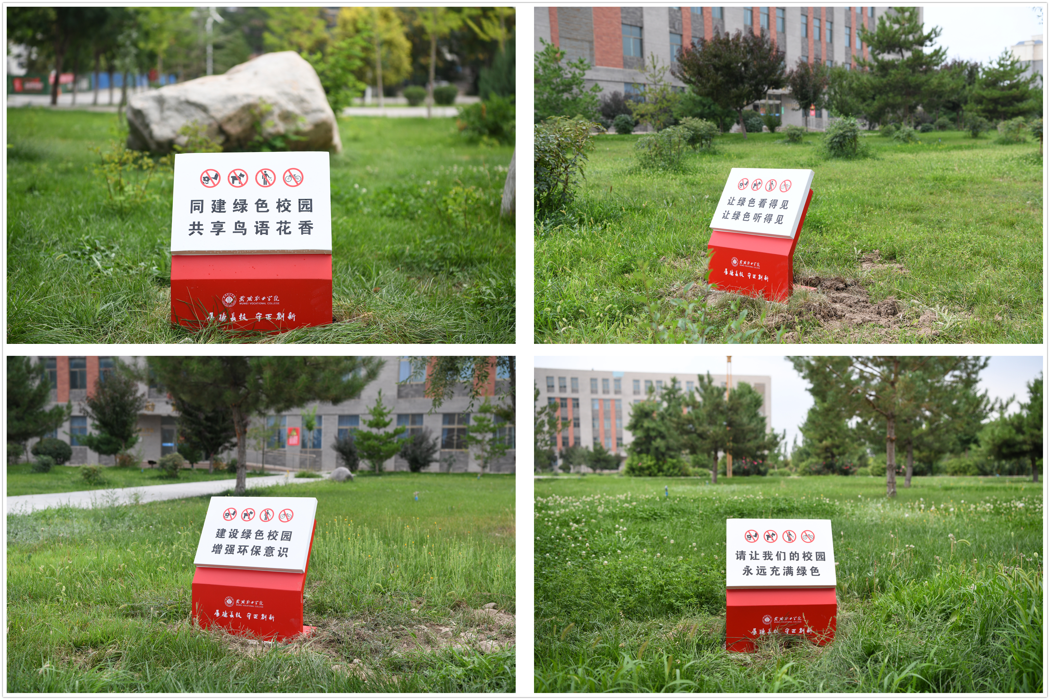 這些文明提示牌用語言簡意賅、生動活潑,設(shè)計典雅大方,富有人文情懷,與校園整體環(huán)境相得益彰,既起到提醒行人言行的作用,又使校園環(huán)境更加優(yōu)美,成為了校園一道亮麗的風(fēng)景。
