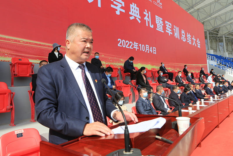 金秋的校園陽光明媚,嘹亮的歌聲唱響青春。10月4日上午9時,在莊嚴隆重的升國旗儀式結(jié)束后,2022級新生開學典禮暨軍訓總結(jié)大會在體育場拉開了帷幕。學校黨委書記、校長趙明出席大會并講話,涼州區(qū)人武部上校政委丁俊強受邀出席。校領(lǐng)導翟存祥、王永緒、田迎春、何毅、陳曉煜、張開禮出席大會。大會由學校黨委委員、副校長王守云主持。