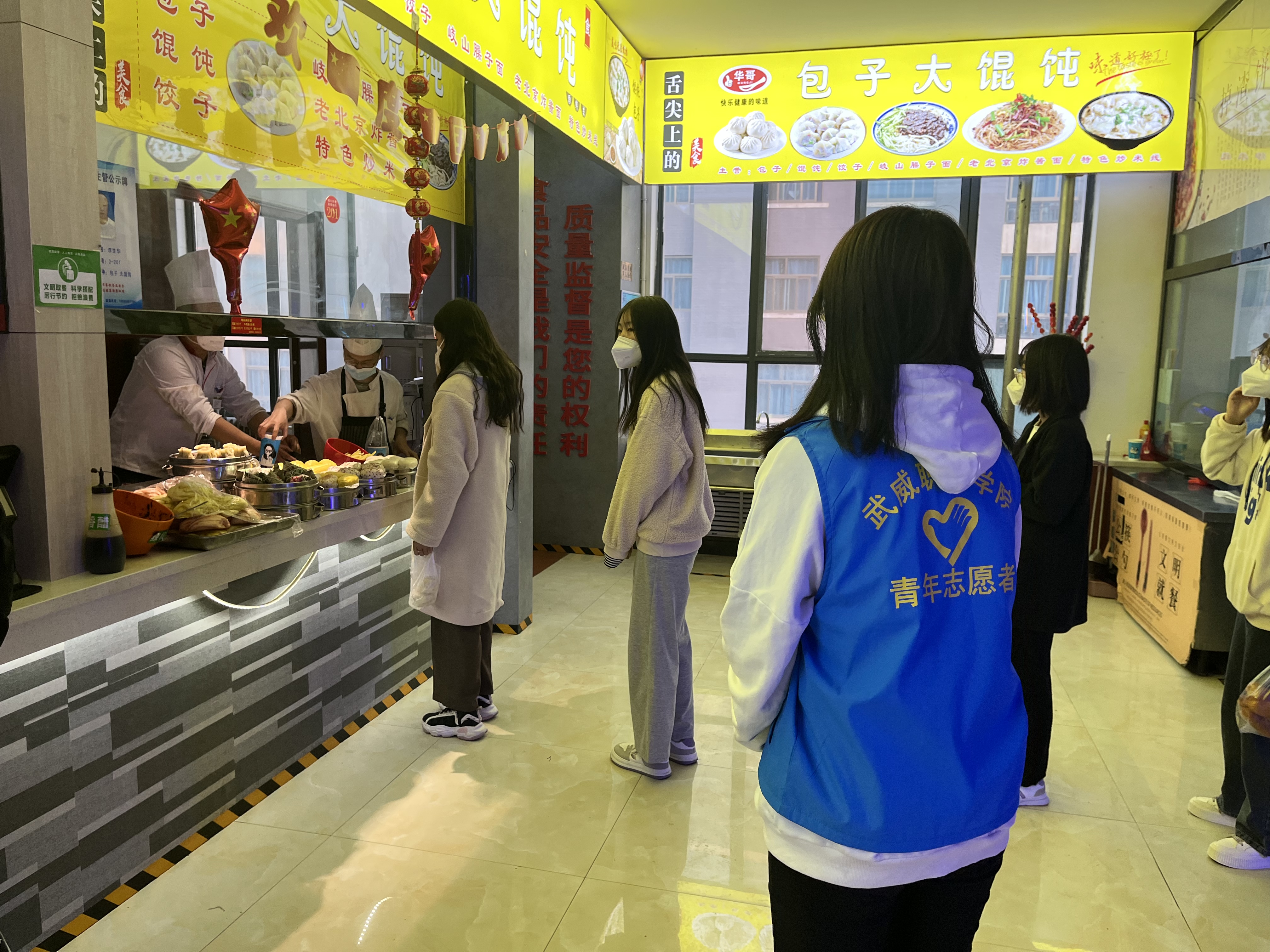 從學(xué)校實(shí)行最小單元宿舍管理開(kāi)始,各學(xué)生組織工作人員分批次、不間斷、輪流值守,他們主動(dòng)亮身份、帶頭當(dāng)先鋒,在校園食堂、水房、超市等人流容易聚集的地方,每天安排志愿者在人流高峰時(shí)間段排班站崗,勸導(dǎo)同學(xué)們遵守疫情防控一米線,不扎堆不聚集,積極佩戴好口罩,做好個(gè)人防護(hù)工作,確保同學(xué)們吃飯、購(gòu)物、打水健康有序進(jìn)行。在對(duì)可能傳入疫情的校園圍欄處開(kāi)展值守勸阻工作,積極勸導(dǎo)學(xué)生不購(gòu)買(mǎi)社會(huì)面商品,堅(jiān)決杜絕疫情從社會(huì)傳入校園,將學(xué)校疫情防控各項(xiàng)措施落細(xì)落實(shí),切實(shí)扛起校園疫情防控責(zé)任。一件件“藍(lán)馬甲”活躍在校園每個(gè)角落,服務(wù)同學(xué)的身影從未間斷,成為校園里一道靚麗的風(fēng)景線,用實(shí)際行動(dòng)詮釋了新時(shí)代武職學(xué)子的責(zé)任與擔(dān)當(dāng)。