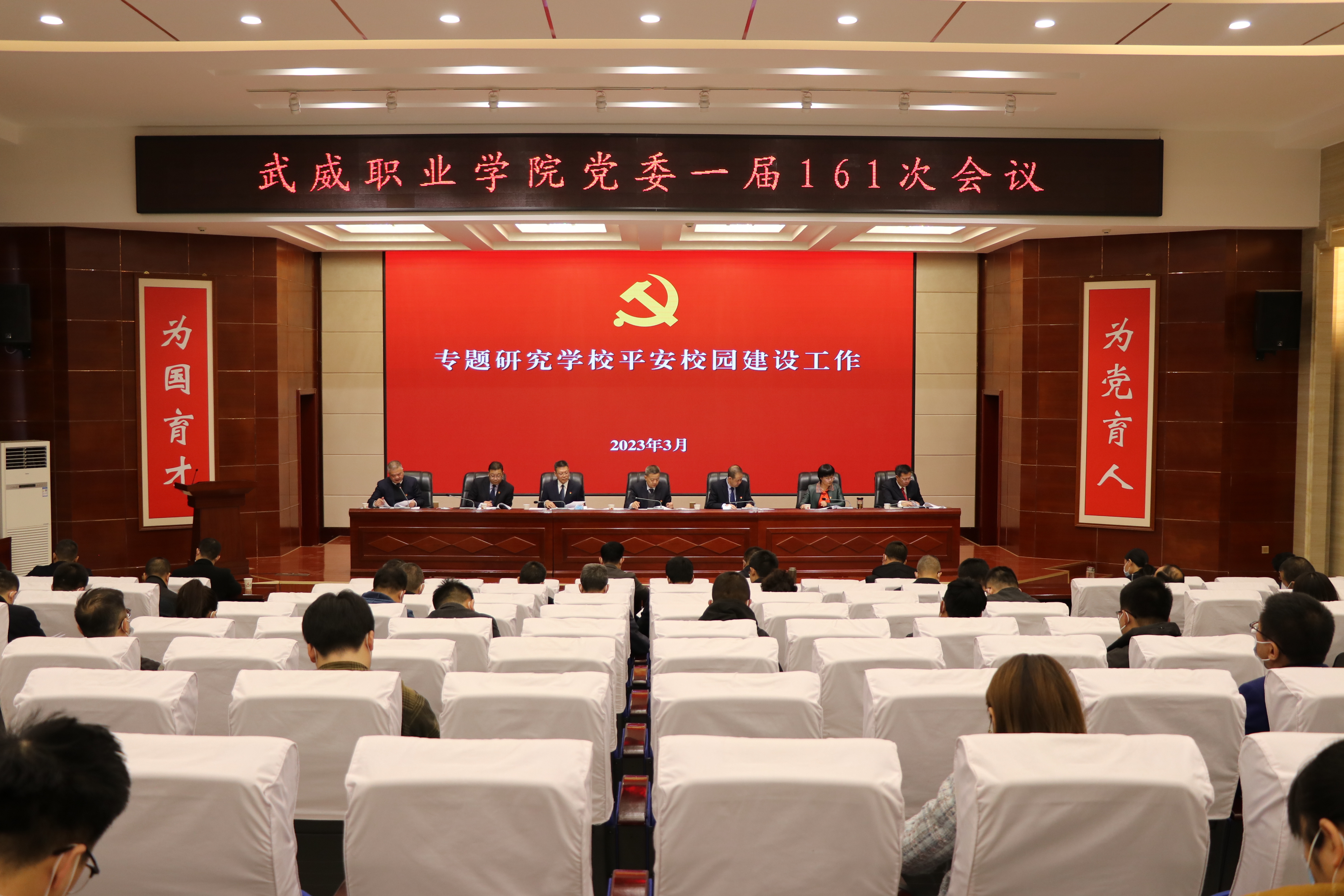 會(huì)議聽取了關(guān)于《武威職業(yè)學(xué)院2023年平安校園建設(shè)工作安排》的匯報(bào),審議通過了《武威職業(yè)學(xué)院2023年平安校園建設(shè)工作目標(biāo)責(zé)任書》。