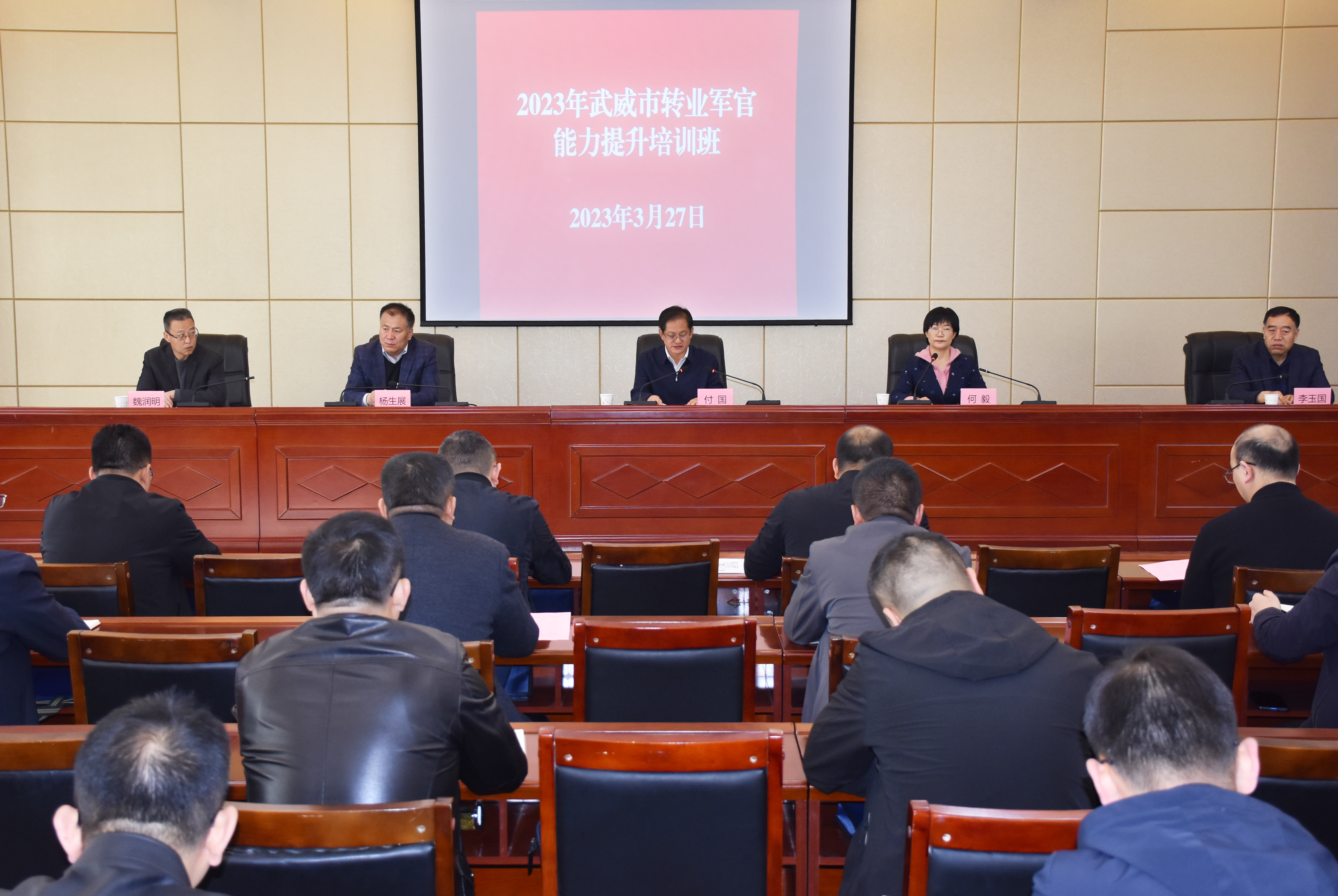 2023年3月27日,由武威市退役軍人事務(wù)局主辦、武威職業(yè)學(xué)院承辦的2023年武威市轉(zhuǎn)業(yè)軍官能力提升培訓(xùn)在武威職業(yè)學(xué)院行樹樓北側(cè)報(bào)告廳舉行開班儀式。這次培訓(xùn)是深入貫徹落實(shí)黨的二十大精神和習(xí)近平總書記關(guān)于退役軍人工作的重要論述和指示批示精神,全面貫徹新發(fā)展理念,以深入開展“三抓三促”行動(dòng)為契機(jī),以提高轉(zhuǎn)業(yè)軍官適應(yīng)能力、履職能力和綜合素質(zhì)為重點(diǎn),促進(jìn)轉(zhuǎn)業(yè)軍官真正以過硬本領(lǐng)、優(yōu)良作風(fēng)、扎實(shí)成效服務(wù)武威經(jīng)濟(jì)社會(huì)高質(zhì)量發(fā)展的重要舉措。