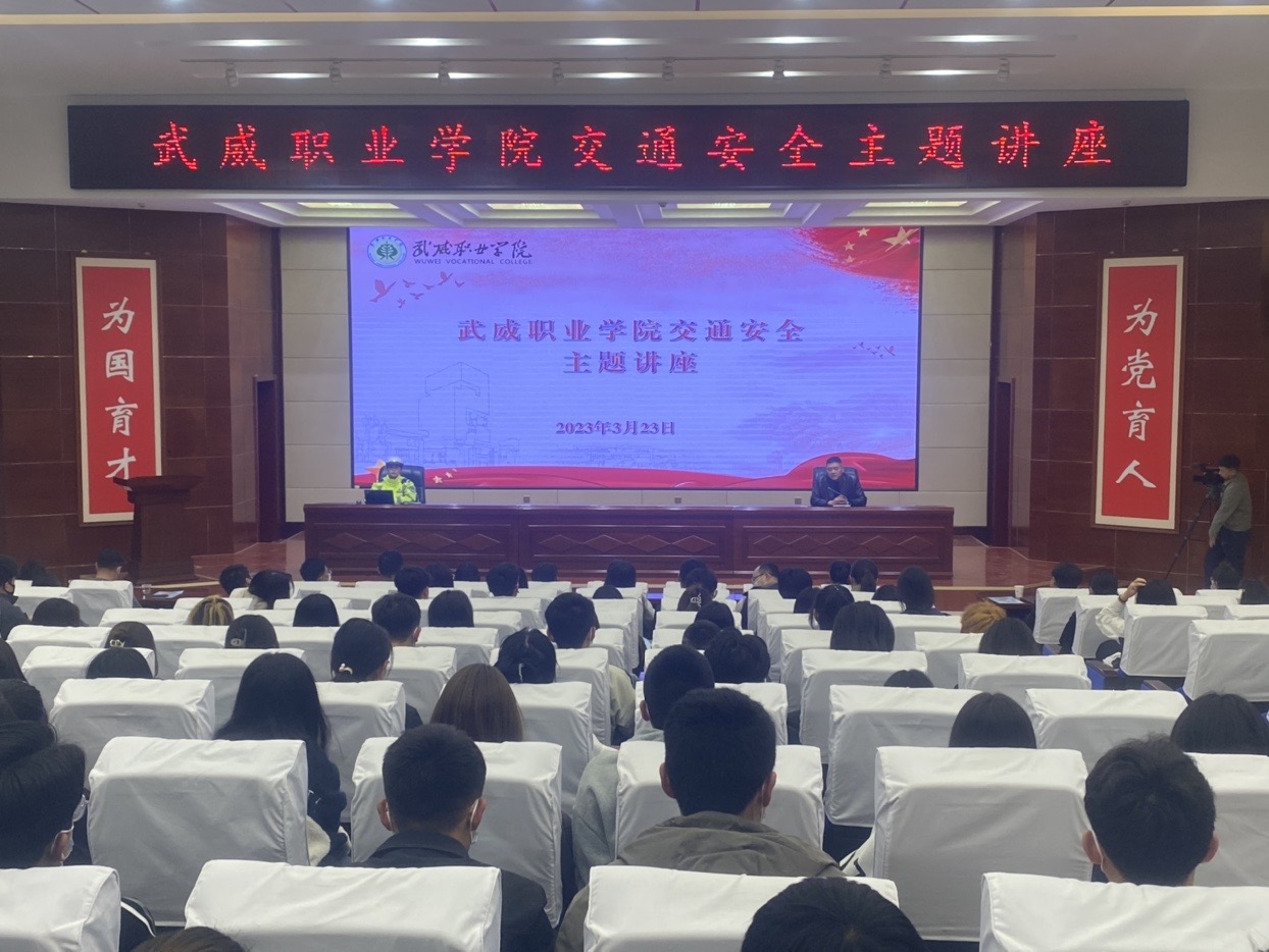 為進(jìn)一步提高學(xué)校師生的交通安全知識,提高廣大師生交通法規(guī)意識、交通安全意識及自我保護(hù)能力,切實(shí)維護(hù)校園周邊道路交通秩序,3月23日下午,學(xué)校安全保衛(wèi)處邀請武威市公安局涼州分局交警大隊(duì)開展交通安全主題講座。講座由學(xué)校安全保衛(wèi)處負(fù)責(zé)人李欣主持。