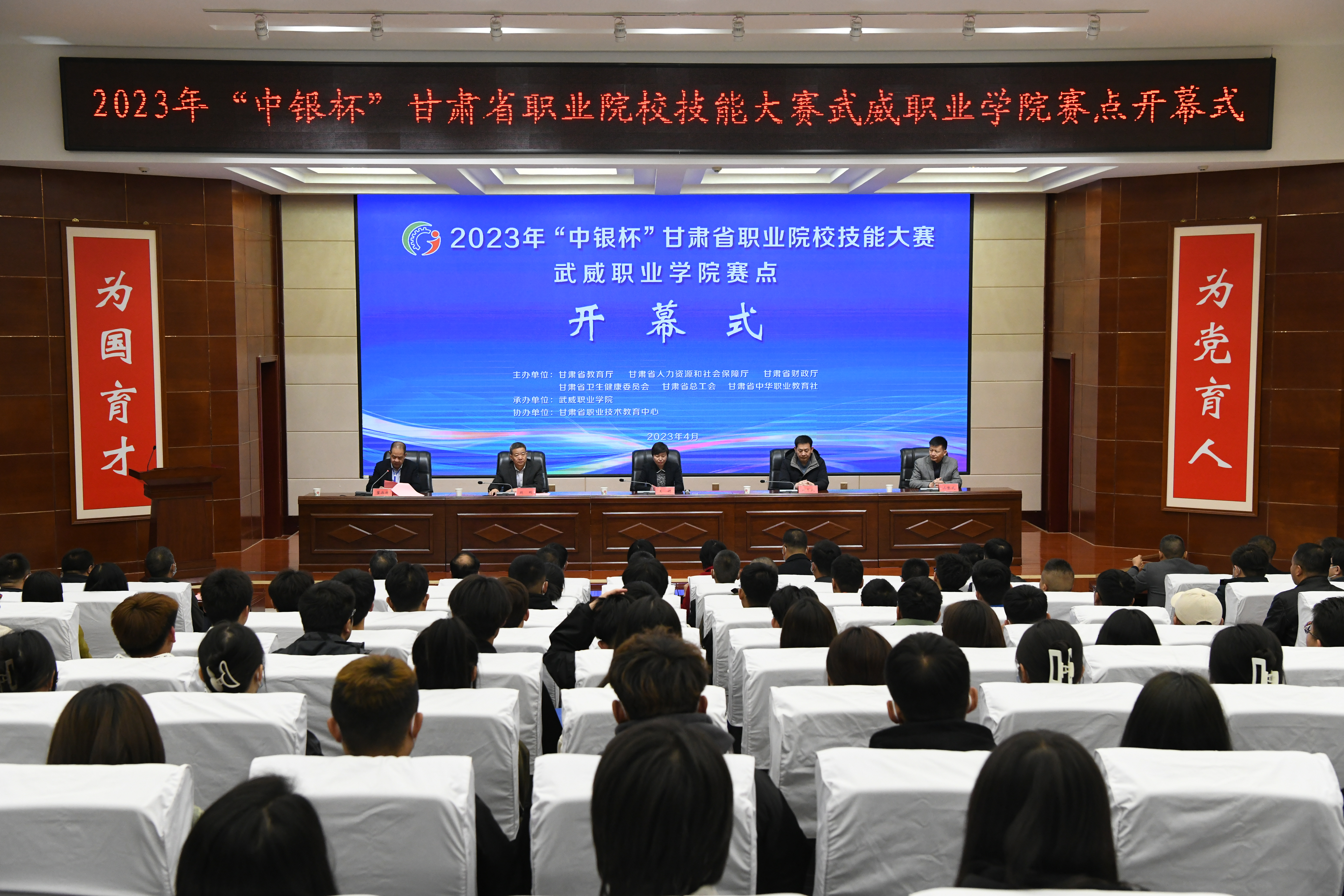 武威市教育局黨組書記、局長王娟宣布2023年“中銀杯”甘肅省職業(yè)院校技能大賽武威職業(yè)學(xué)院賽點開賽。