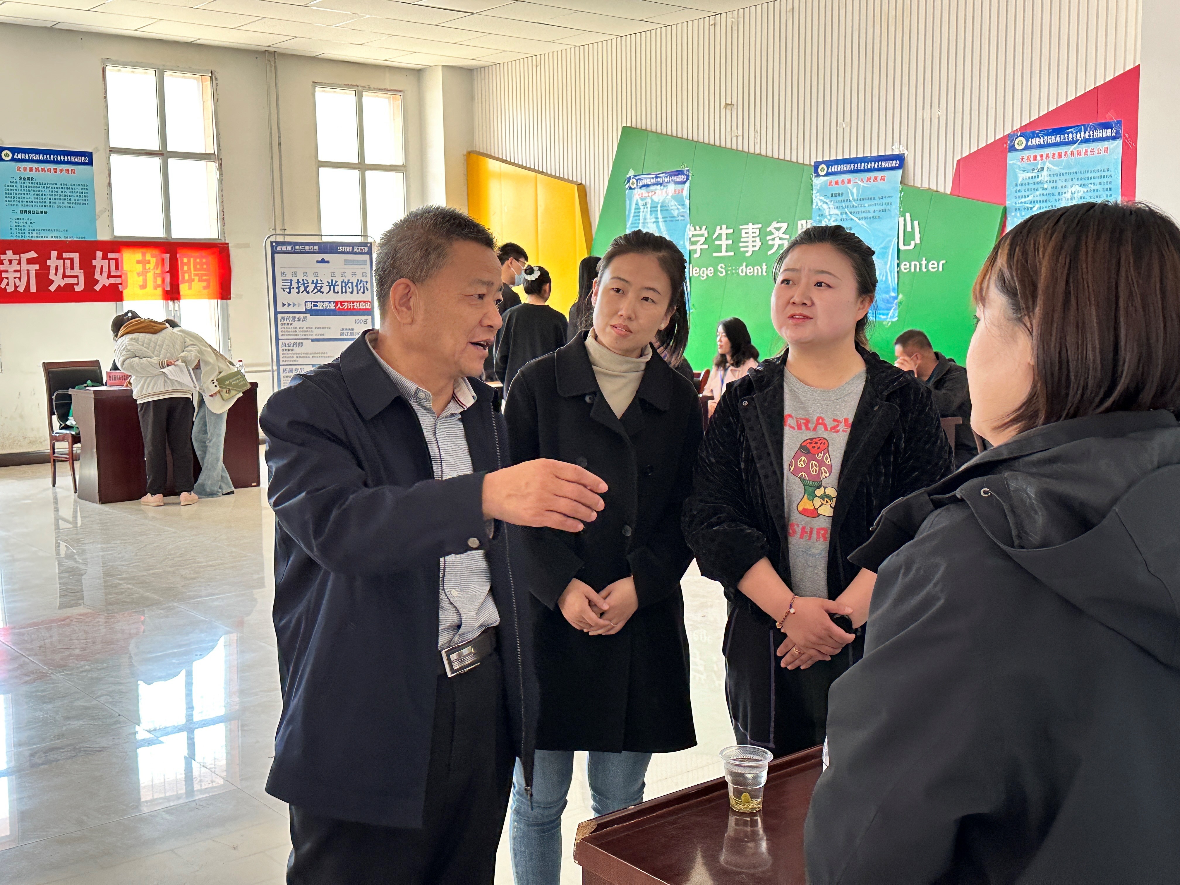 學(xué)院高度重視此次招聘活動,會前主動邀請、積極與用人單位溝通,頻繁進行會議預(yù)熱宣傳。本次招聘單位有新疆輪臺縣人民醫(yī)院、新源縣人民醫(yī)院、武威市第二人民醫(yī)院、咸陽不老幫智慧養(yǎng)老有限公司、北京新媽媽母嬰護理院等共計14家省內(nèi)外醫(yī)院、民營醫(yī)療機構(gòu)到場參加。為了給更多同學(xué)提供更多便利,本次招聘會采用線上線下同步進行的方式,共計提供優(yōu)質(zhì)崗位300余個。