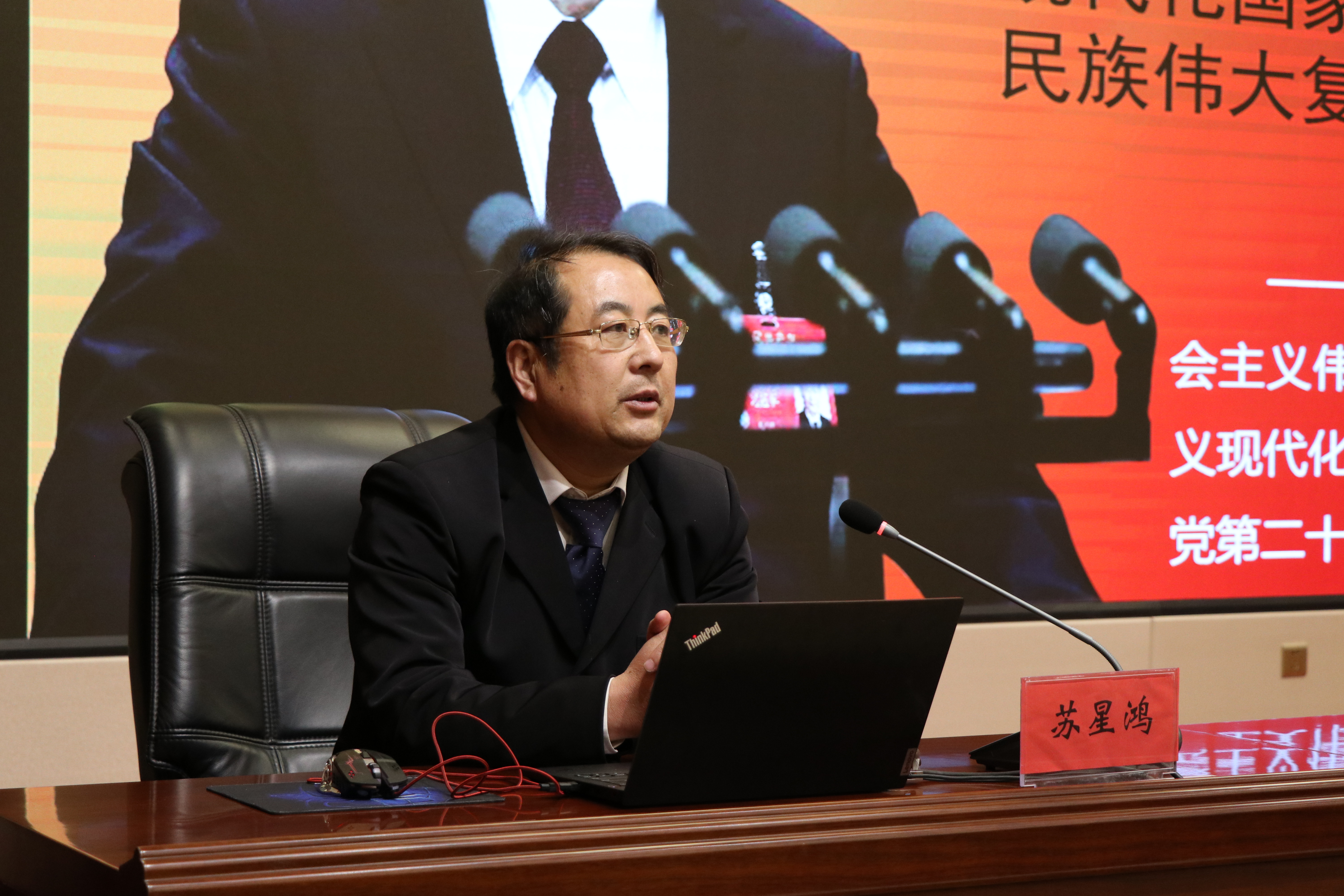 蘇星鴻教授以《深刻把握黨的二十大精神的核心要義》為題,從黨的二十大召開(kāi)的歷史背景和重大意義、過(guò)去五年的工作和新時(shí)代十年的偉大變革、開(kāi)辟馬克思主義中國(guó)化時(shí)代化新境界的科學(xué)內(nèi)涵、新時(shí)代新征程中國(guó)共產(chǎn)黨使命任務(wù)的豐富內(nèi)涵、以黨的自我革命推進(jìn)偉大的社會(huì)革命的實(shí)踐意義和“五個(gè)必由之路”的戰(zhàn)略意義六個(gè)方面進(jìn)行了深入淺出的闡述,對(duì)師生深刻理解黨的二十大精神具有很強(qiáng)的啟發(fā)意義。