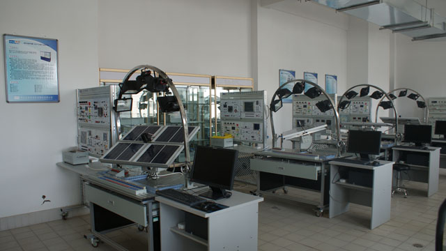 光伏光熱實(shí)訓(xùn)室建立于2013年4月初,主要面向光伏發(fā)電及應(yīng)用技術(shù)、太陽(yáng)能光熱技術(shù)專(zhuān)業(yè),是能源工程系的專(zhuān)業(yè)實(shí)訓(xùn)室之一。室內(nèi)配有光伏產(chǎn)業(yè)鏈陳列柜、太陽(yáng)能輻射觀(guān)測(cè)系統(tǒng)、太陽(yáng)能氣象觀(guān)測(cè)系統(tǒng)各1套,太陽(yáng)能熱水器實(shí)訓(xùn)裝置2套,太陽(yáng)能光伏發(fā)電系統(tǒng)應(yīng)用平臺(tái)4套,太陽(yáng)能光伏發(fā)電系統(tǒng)實(shí)訓(xùn)裝置8套。該實(shí)訓(xùn)室主要服務(wù)于我系《光伏發(fā)電技術(shù)分析與應(yīng)用》、《太陽(yáng)能資源利用與開(kāi)發(fā)》、《光伏發(fā)電系統(tǒng)集成與施工》等專(zhuān)業(yè)核心課程。