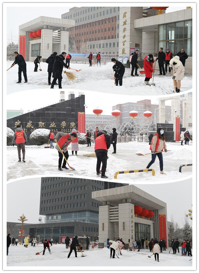 本次清掃積雪活動進一步提高了教職工的志愿服務意識,為建設優(yōu)美、整潔、舒適的校內(nèi)外環(huán)境,建設美麗文明的武威貢獻了一份力量,帶動了更多的轄區(qū)居民以實際行動支持創(chuàng)城,從我做起,從身邊小事做起,從點滴做起,共同創(chuàng)建文明城市,爭做文明市民。