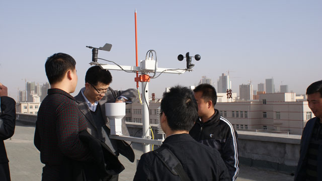 本次培訓(xùn)旨在提高教師對新進(jìn)實(shí)驗(yàn)設(shè)備的熟悉程度,解答實(shí)驗(yàn)過程存在的問題。設(shè)備廠家北京中鼎科技有限公司的技術(shù)人員為各位參加培訓(xùn)的老師進(jìn)行了講解和介紹。此次新進(jìn)的實(shí)驗(yàn)設(shè)施包括太陽能光伏發(fā)電應(yīng)用平臺、太陽能光熱集熱器、氣象監(jiān)控站、太陽輻射能測量平臺、集熱管性能檢測平臺等專業(yè)相關(guān)的實(shí)驗(yàn)設(shè)備。廠家的技術(shù)人員演示了太陽能光伏發(fā)電設(shè)備在太陽能蓄電池、太陽能離網(wǎng)并網(wǎng)發(fā)電方面的應(yīng)用,并展示了氣象監(jiān)控站實(shí)時監(jiān)控的氣象數(shù)據(jù)。老師們在技術(shù)人員的帶領(lǐng)下來到了氣象監(jiān)控設(shè)備及太陽能輻射能測量設(shè)備安放的平臺,近距離的觀察了監(jiān)控設(shè)備的安裝和運(yùn)行,并詢問了監(jiān)控設(shè)備的使用和維護(hù)的注意事項(xiàng)。