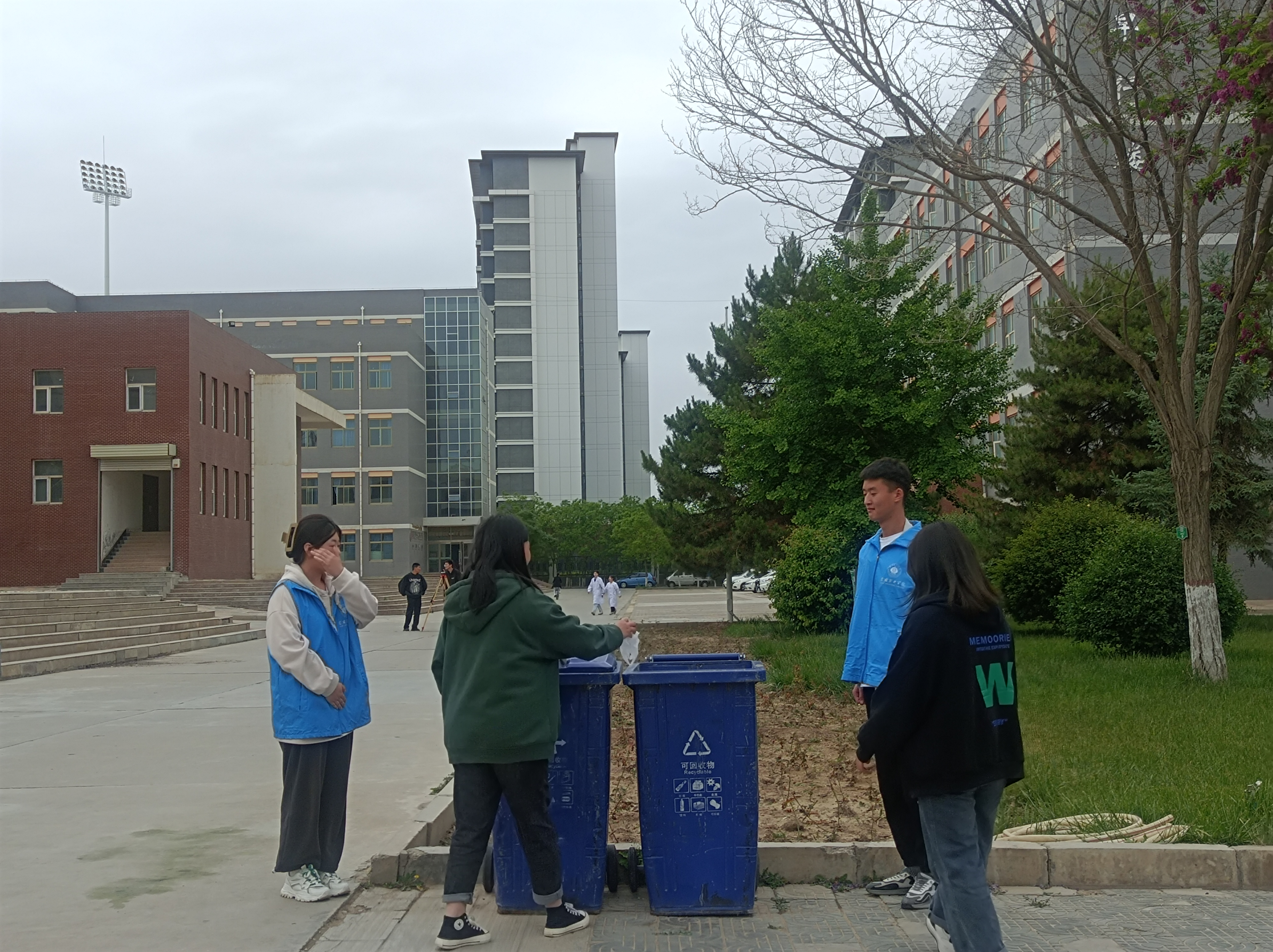 ? ? ? 志愿者們 積極參與生活垃圾分類宣傳,傳播“生態(tài)文明,從我做起"的生活理念,主動(dòng)做垃圾分類知識(shí)的宣傳者、文明生活理念的倡導(dǎo)者、垃圾分類收集的志愿者,以實(shí)際行動(dòng)帶動(dòng)身邊人參與生活垃圾分類和勞動(dòng)實(shí)踐中來。積極參加學(xué)校垃圾分類工作,從自身做起、從現(xiàn)在做起,正確分類垃圾,主動(dòng)糾正錯(cuò)誤的垃圾分類習(xí)慣,自覺將學(xué)習(xí)、工作、生活過程中產(chǎn)生的垃圾進(jìn)行分類收集和投放,不隨意丟棄。志愿者積極的奔走在校園每一個(gè)角落,引導(dǎo)同學(xué)們做好垃圾分類,為同學(xué)們樹立起垃圾分類的意識(shí)。