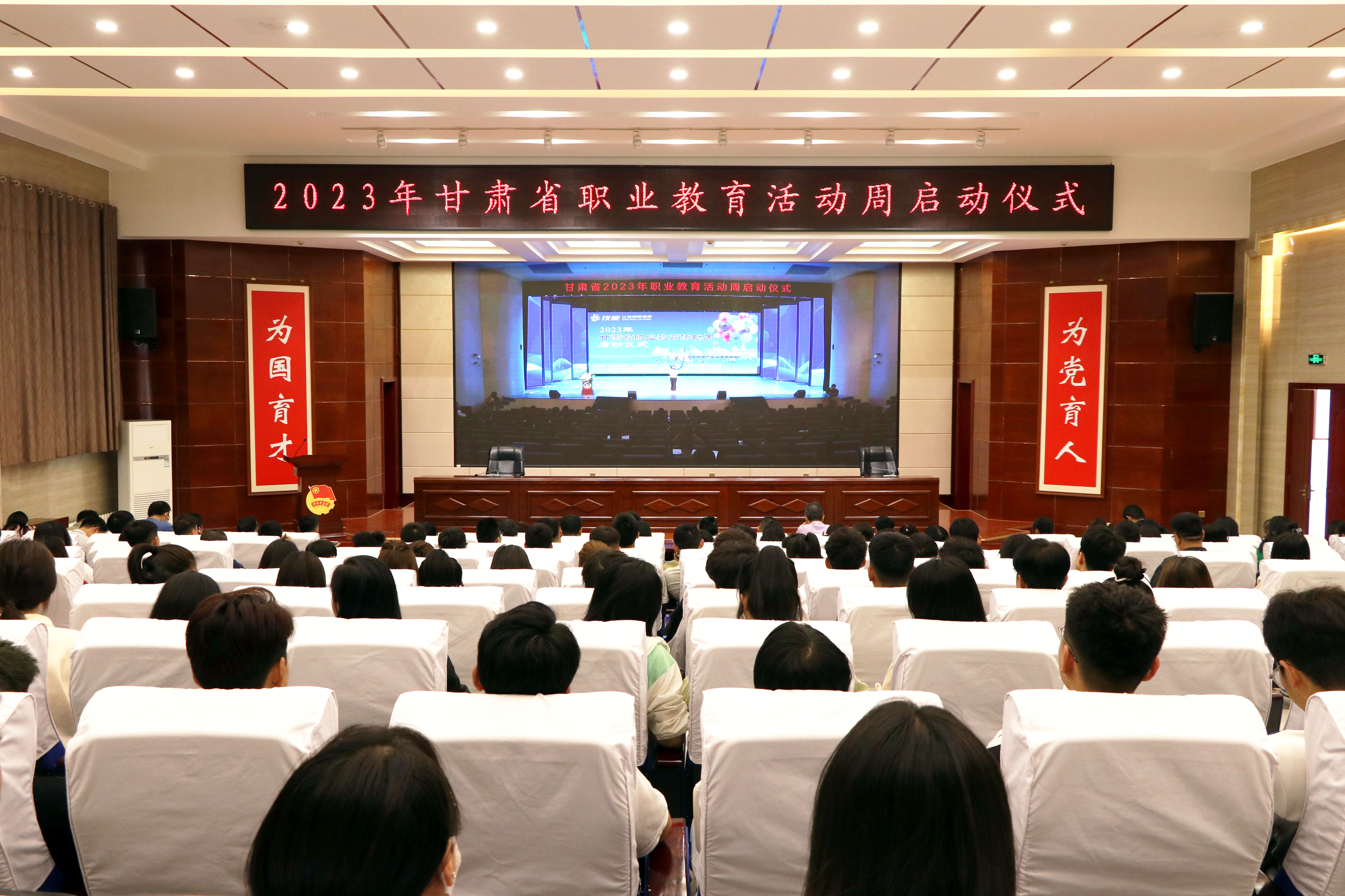 啟動(dòng)儀式上,通過視頻展示了各個(gè)甘肅職業(yè)院校的風(fēng)采,介紹了省級(jí)職業(yè)教育常態(tài)化宣傳平臺(tái),宣讀了2023年全省職業(yè)院校技能大賽獲獎(jiǎng)師生、先進(jìn)工作者、2023年“中銀杯”甘肅省職業(yè)院校優(yōu)秀組織者名單、2022年職業(yè)教育技術(shù)標(biāo)兵,并為他們頒發(fā)證書。